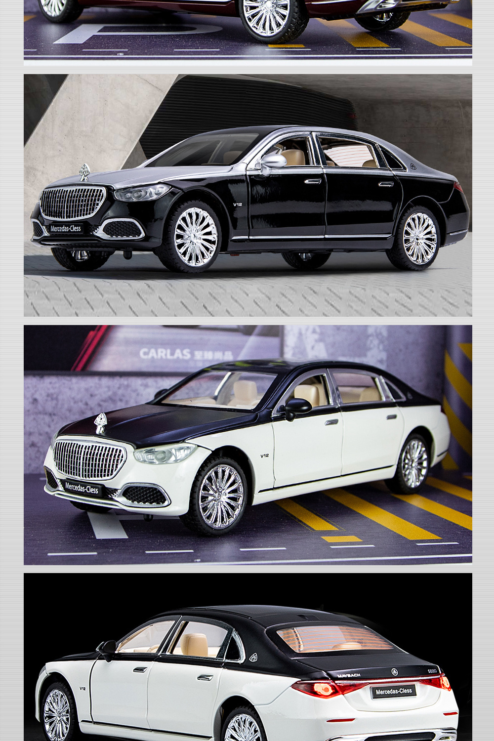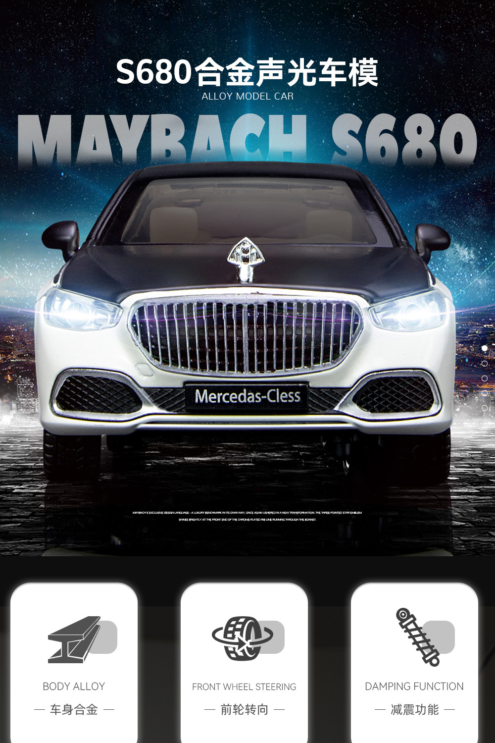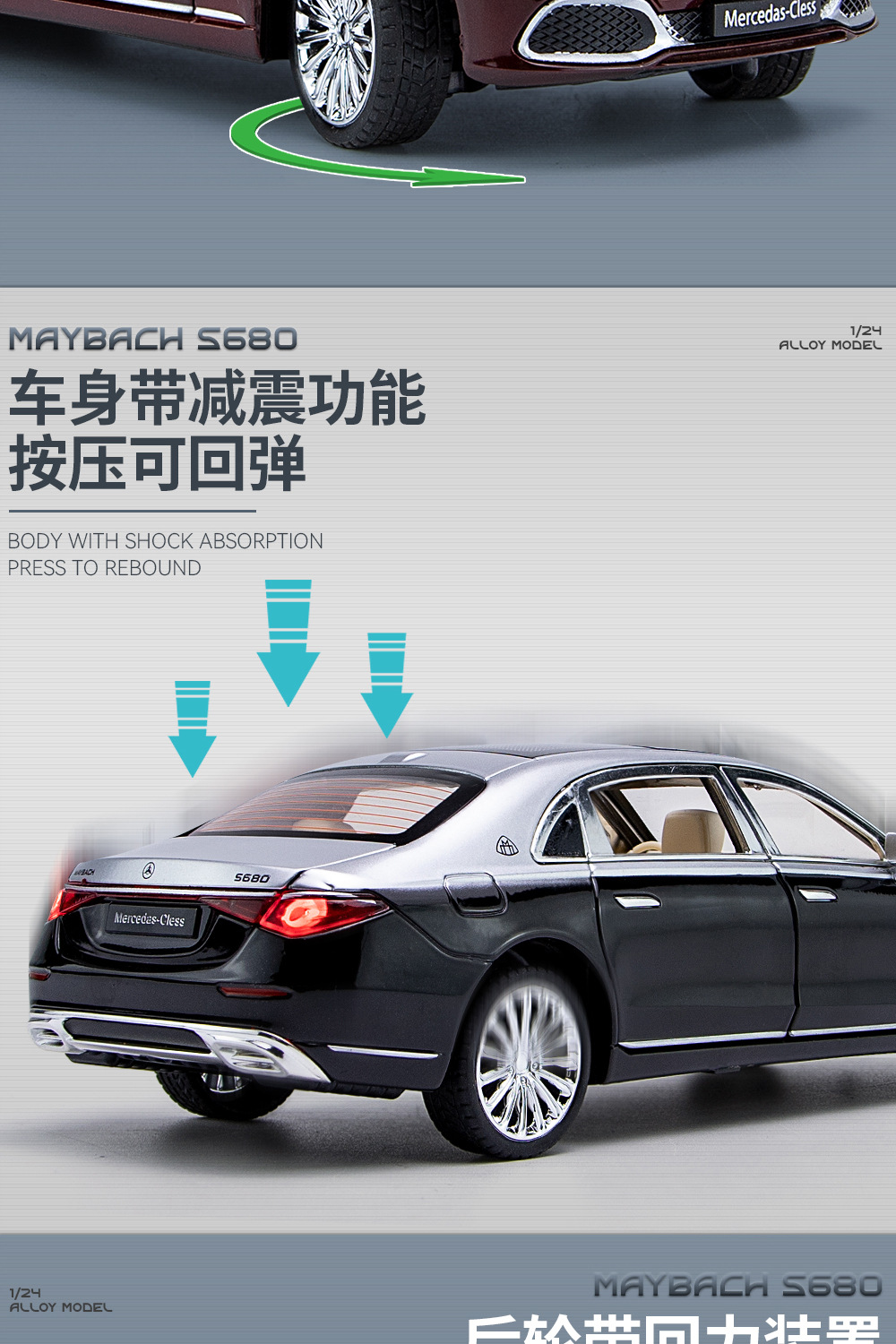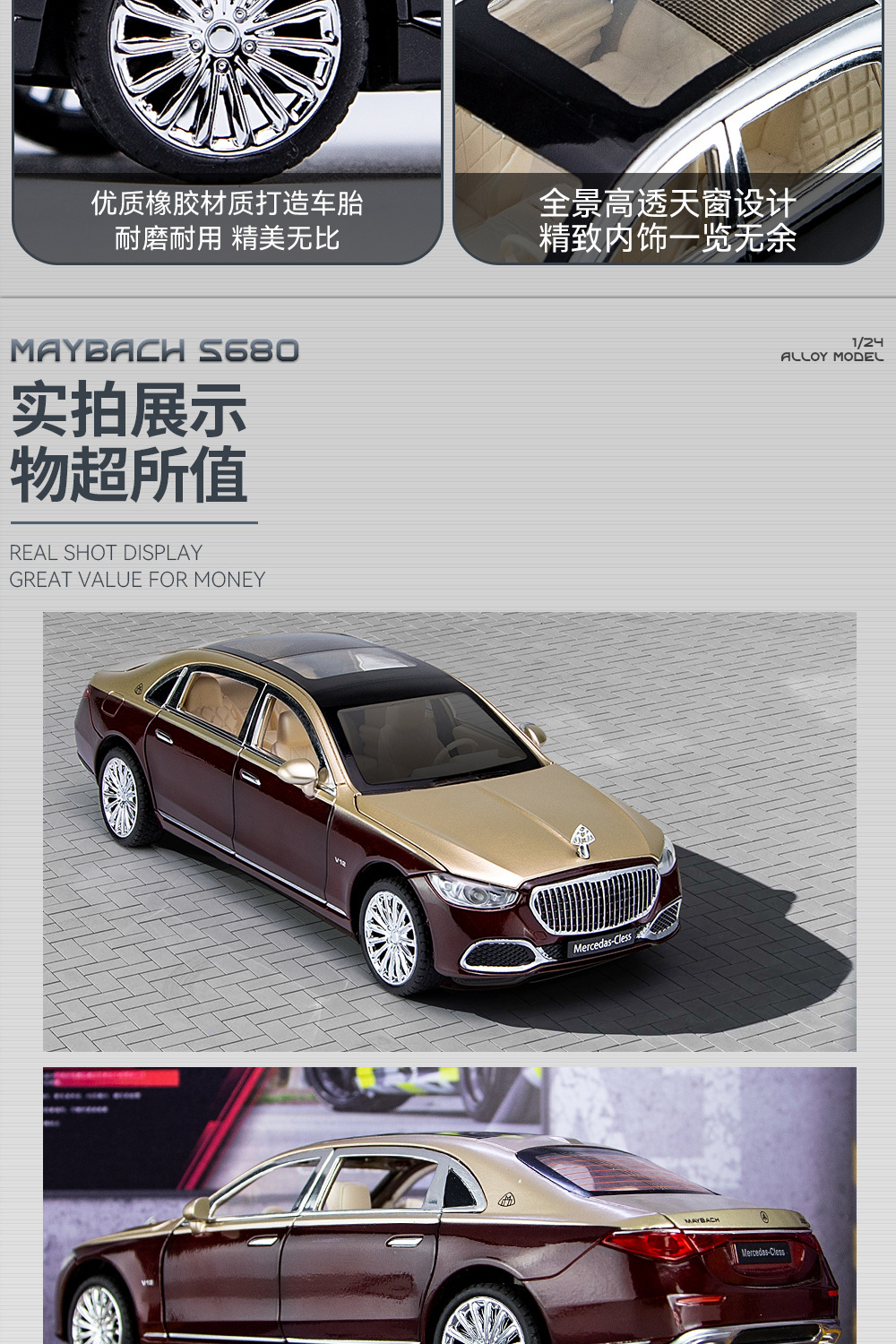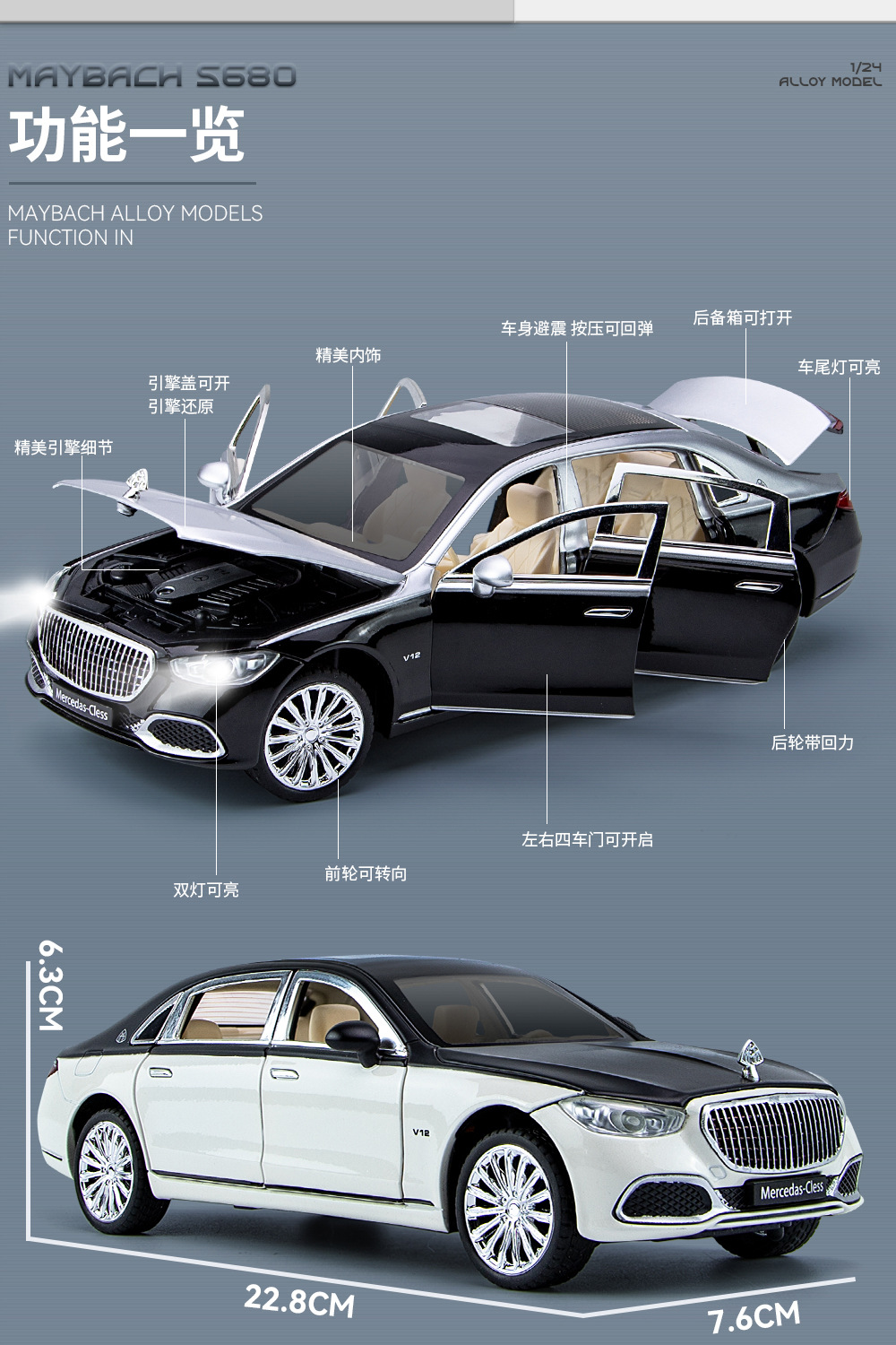 새로운 Haodi C2409 창 상자 Maybach 680 시뮬레이션 1/24 어린이 소리와 빛 풀백 합금 자동차 모델 장난감스토어 가기