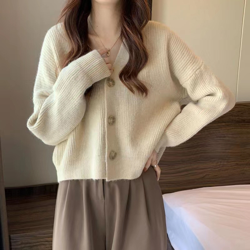 가을 니트 가디건 여성용 2026 신상 루즈핏 레이지 스타일 긴팔 상의 한국 스타일 브이넥 스웨터 여성용 아우터 트렌디