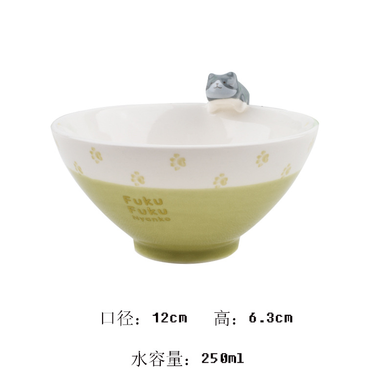 일본 싱글 고양이 도자기 그릇 귀여운 만화 입체 밥그릇 디저트 그릇 크리에이티브 홈 그릇 FUKU 시리즈