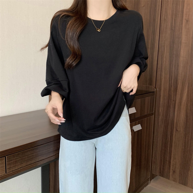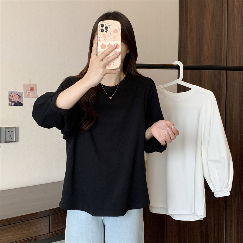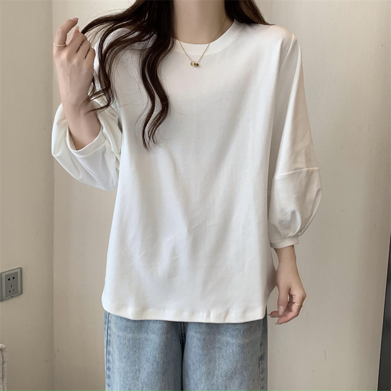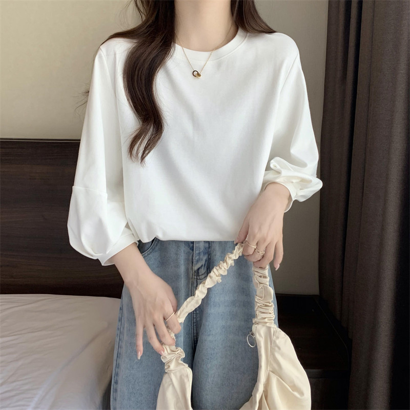 크로스 보더 뉴 랜턴 슬리브 티셔츠 여성용 봄과 가을 2022 루즈한 모든 매치 7 점 슬리브 탑 베이스 셔츠스토어 가기