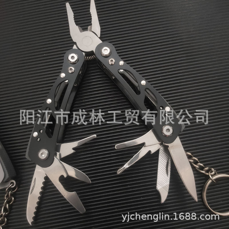 【功能】十字螺丝起子.一字螺丝起子.剥线钳.指甲清洁刀.指甲挫刀.小刀.开瓶器.锯齿切割器与钥匙圈等功能