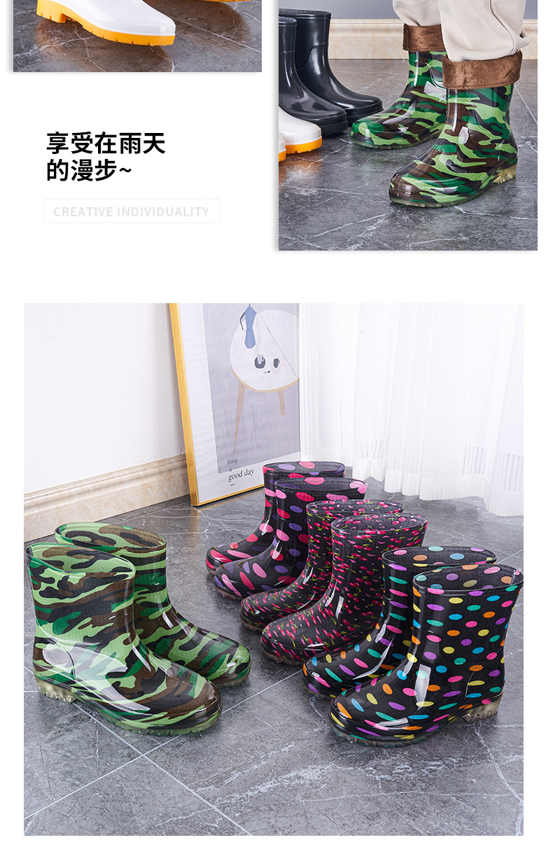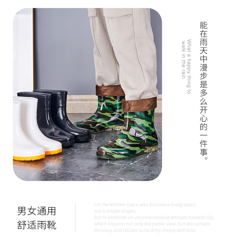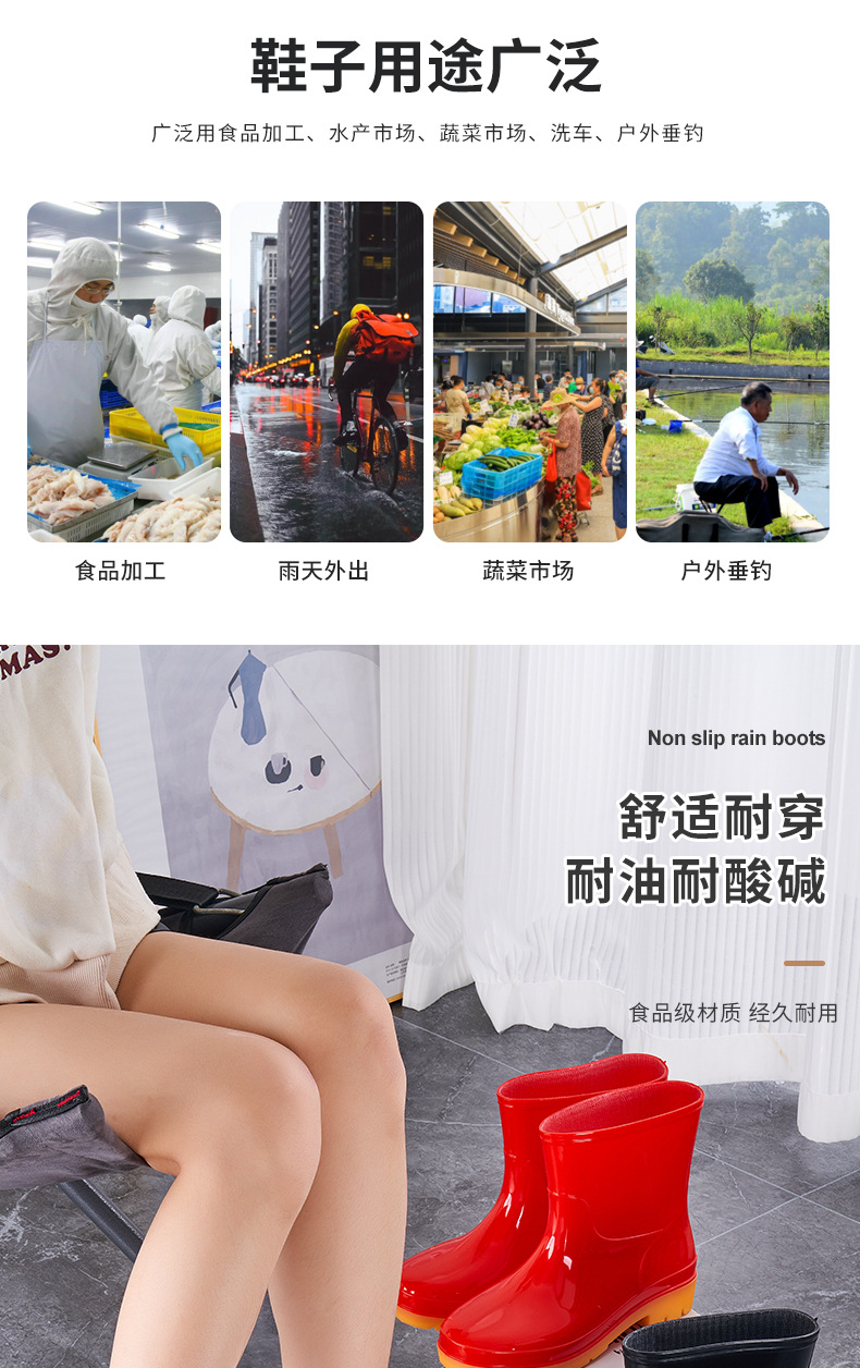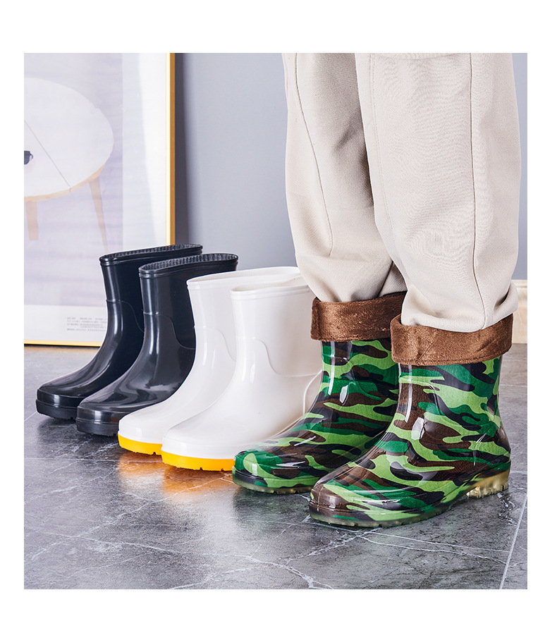 레인 부츠 남성 및 여성용 짧은 튜브 물 신발 주방 신발 레인 부츠 안티 스플래시 신발 미끄럼 방지 방수 두꺼운 내마모성 로우 탑 오버 슈즈 고무 신발