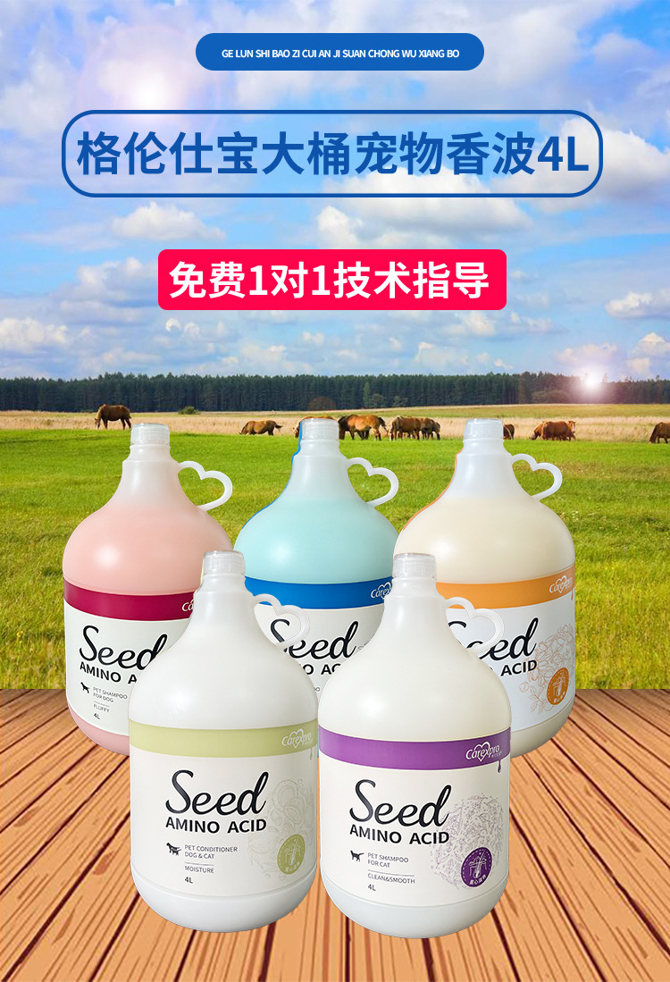 Glenshaobao 애완 동물 샤워 젤 샴푸 씨앗 아미노산 컨디셔너 개 세면 용품 목욕 젤 대용량스토어 가기