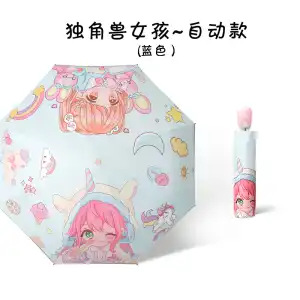 • 70% off 완전 자동 경량 어린이 우산 - 유니콘 소녀 블루