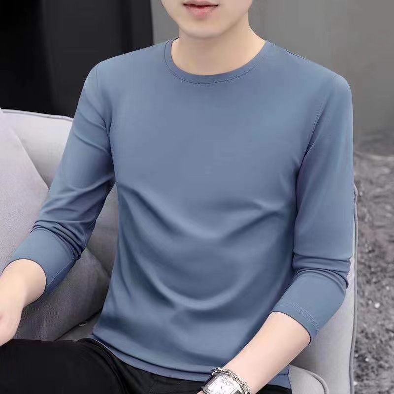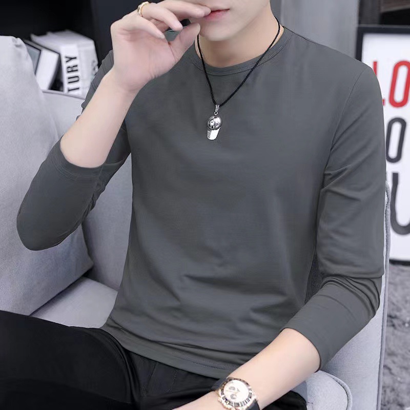공장 도매 긴 소매 티셔츠 남성 하의 셔츠 라운드 넥 단색 슬림 스포츠 탑 봄과 가을 심플 플러스 사이즈 T