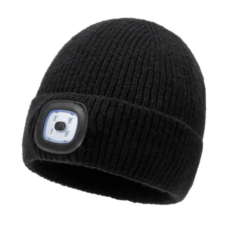 • LED 조명 니트 모자 - 블랙
