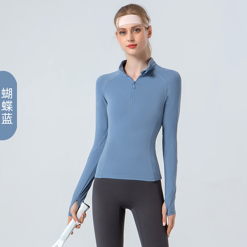 가을 겨울 신상 여성 요가복 스탠드 칼라 반지퍼 타이트 스포츠 긴팔 고탄력 속건 부드러운 피트니스웨어 자켓스토어 가기