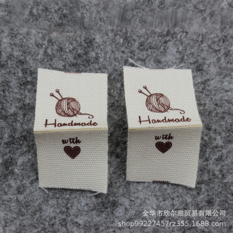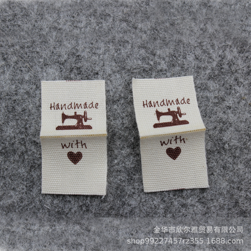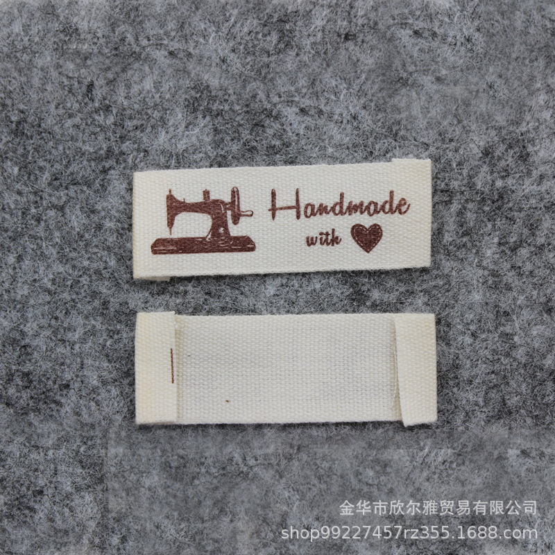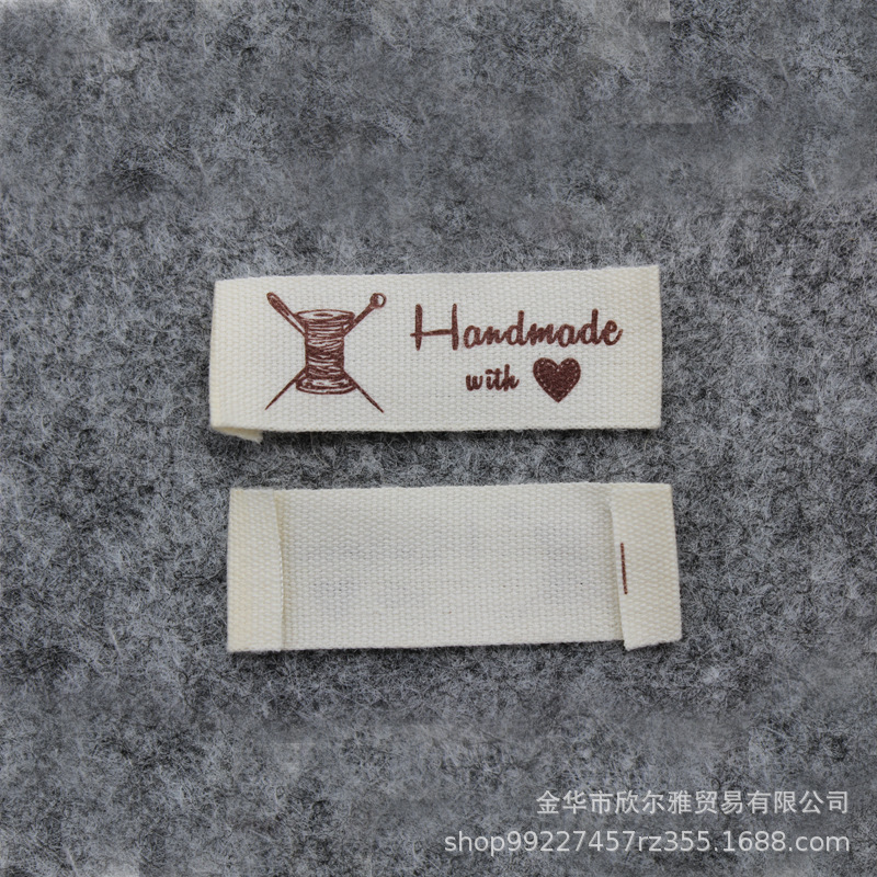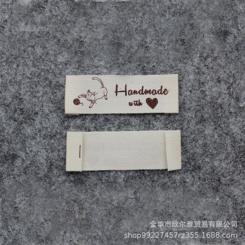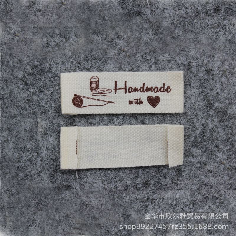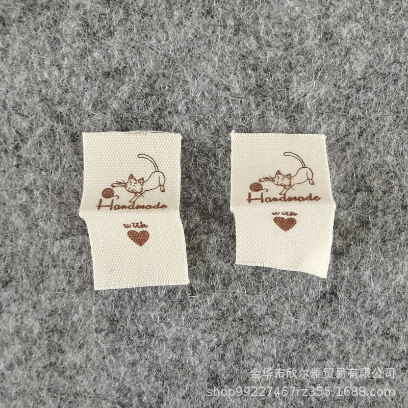跨境handmade纯棉布标对折棉标侧标手工包包玩偶标签印唛商标批发