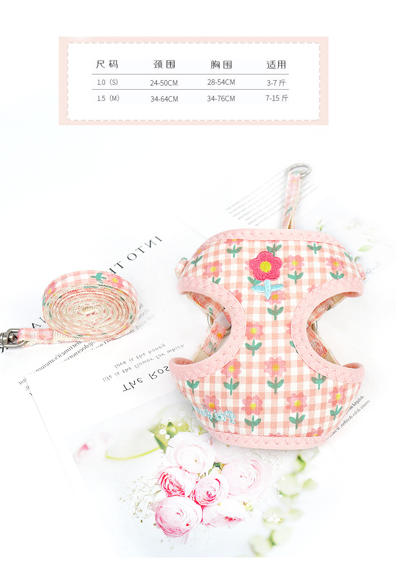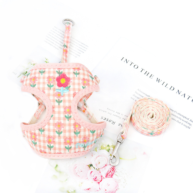 국경을 넘는 애완동물 하네스 조끼형 자수 강아지 하네스 강아지 목줄 중소형견 애완용품스토어 가기