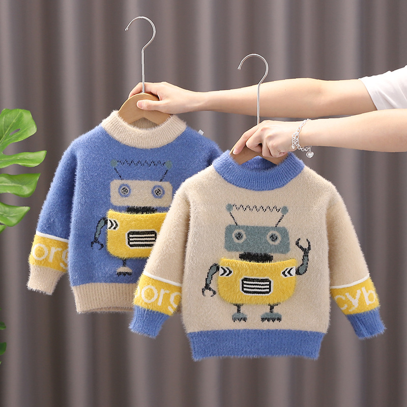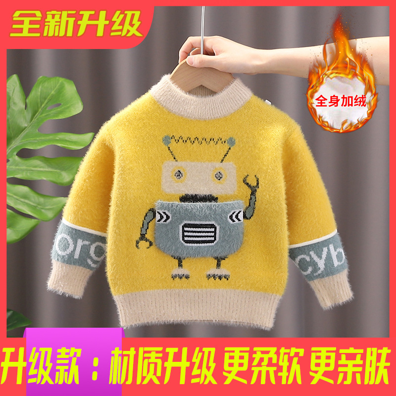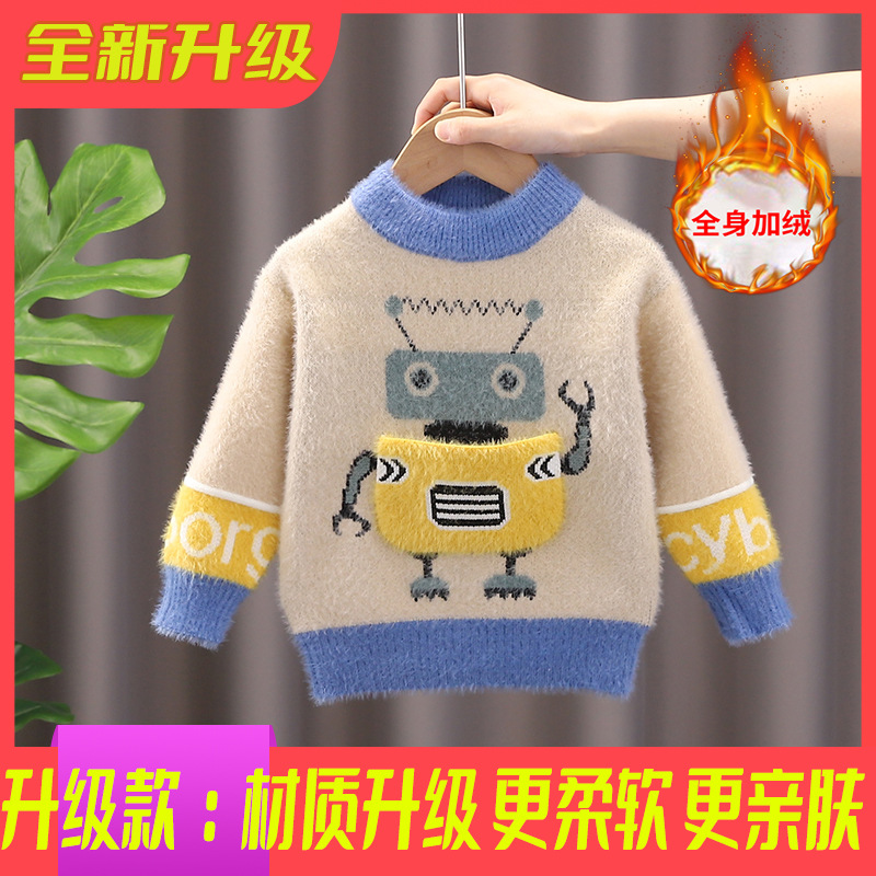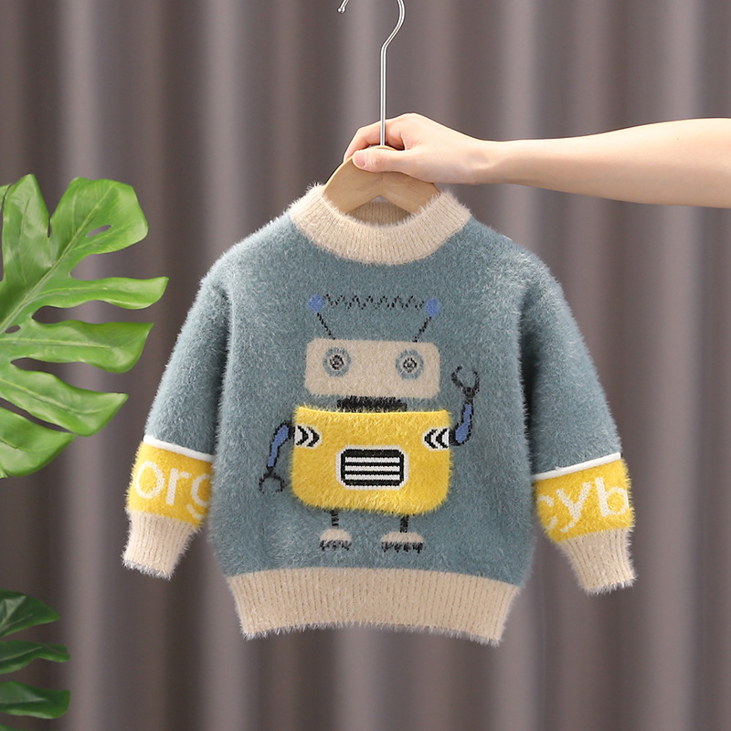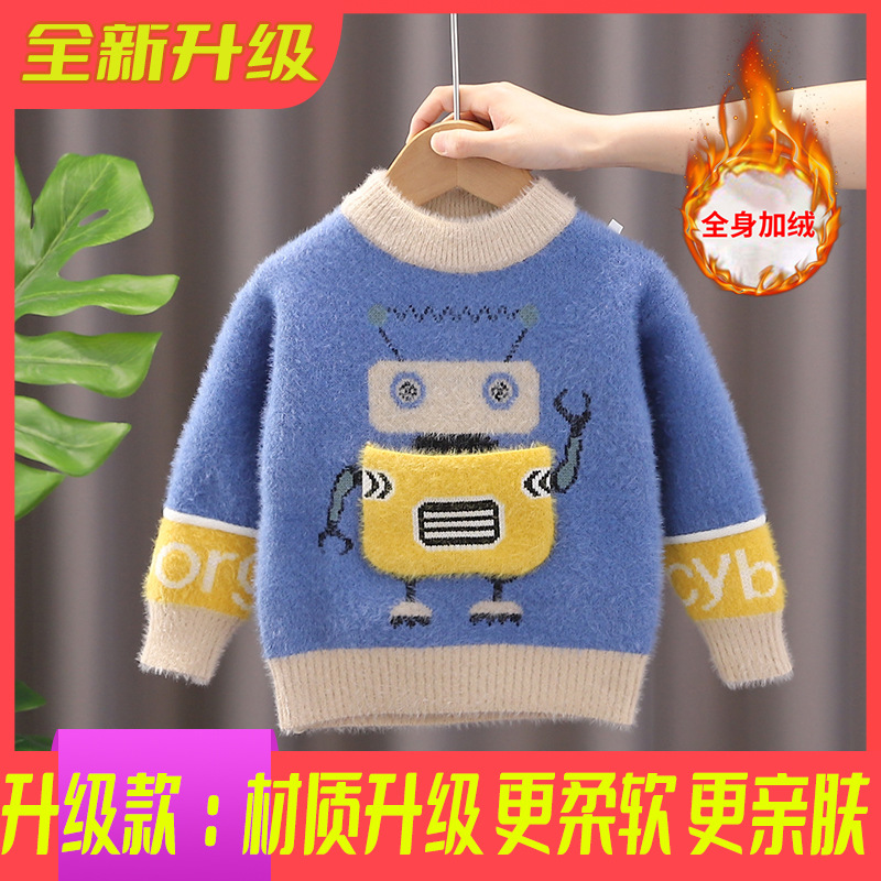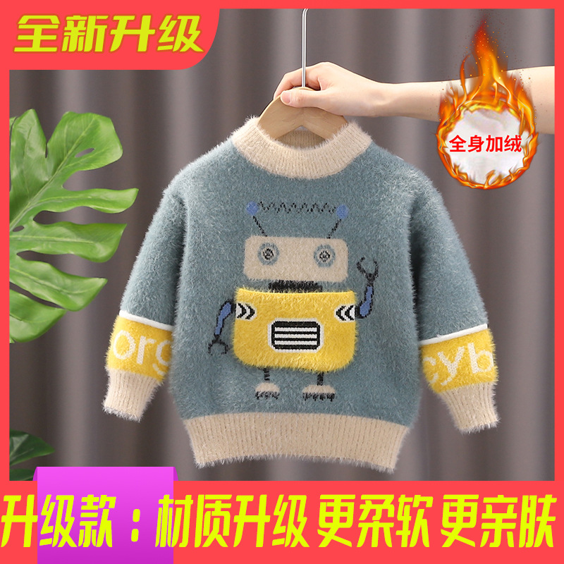 2022 가을과 겨울 소년의 스웨터베이스 셔츠 밍크 벨벳 소년의 니트 어린이 만화 세련된 탑스토어 가기