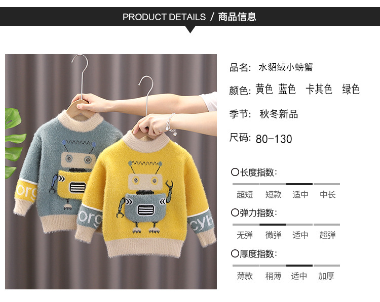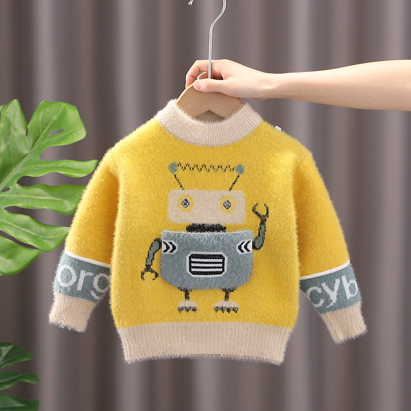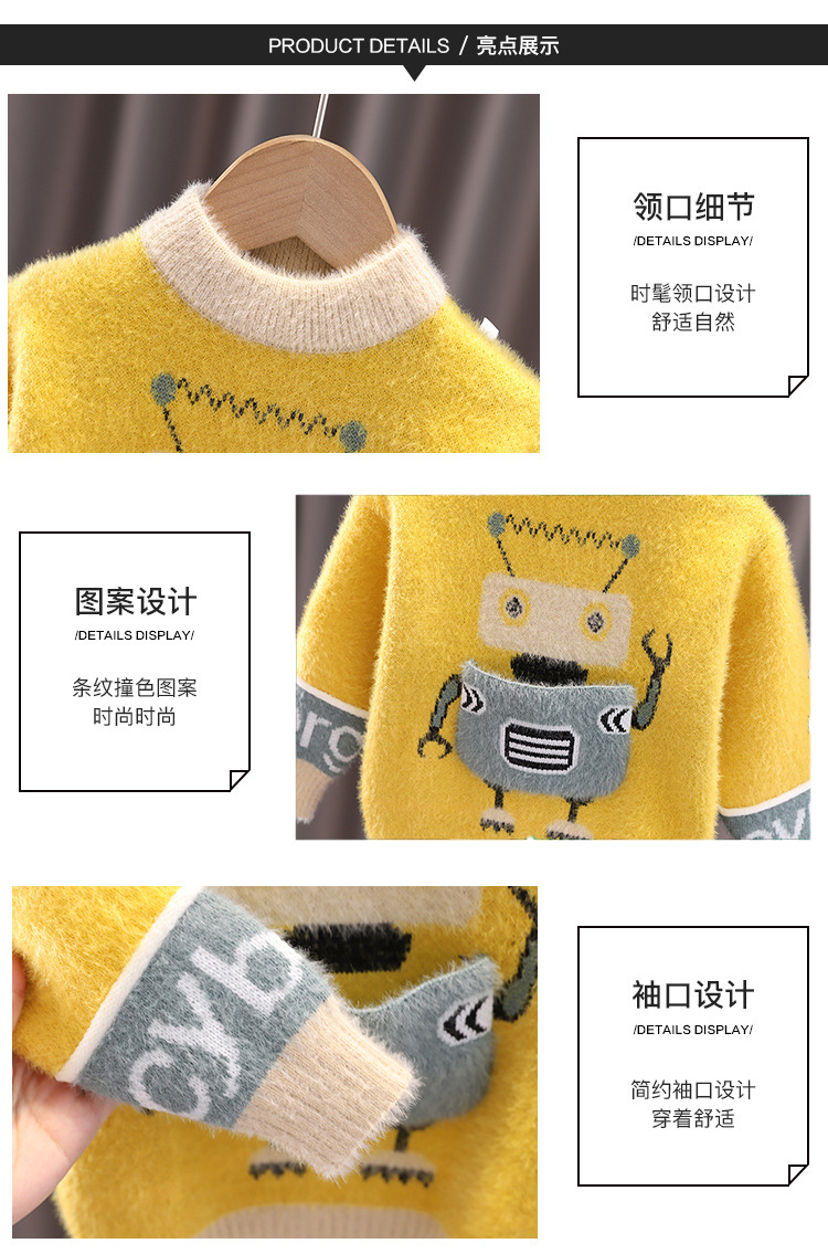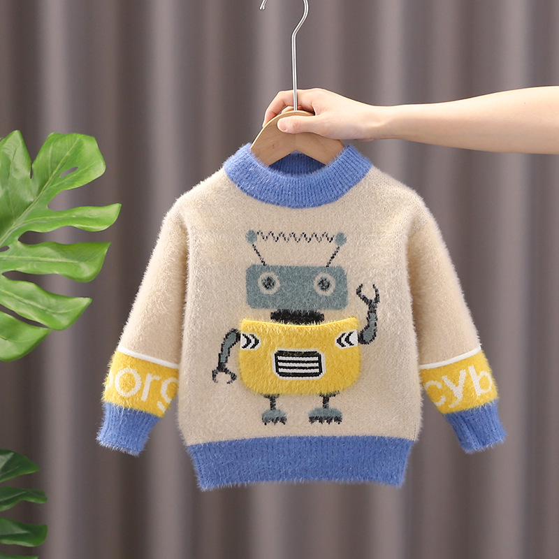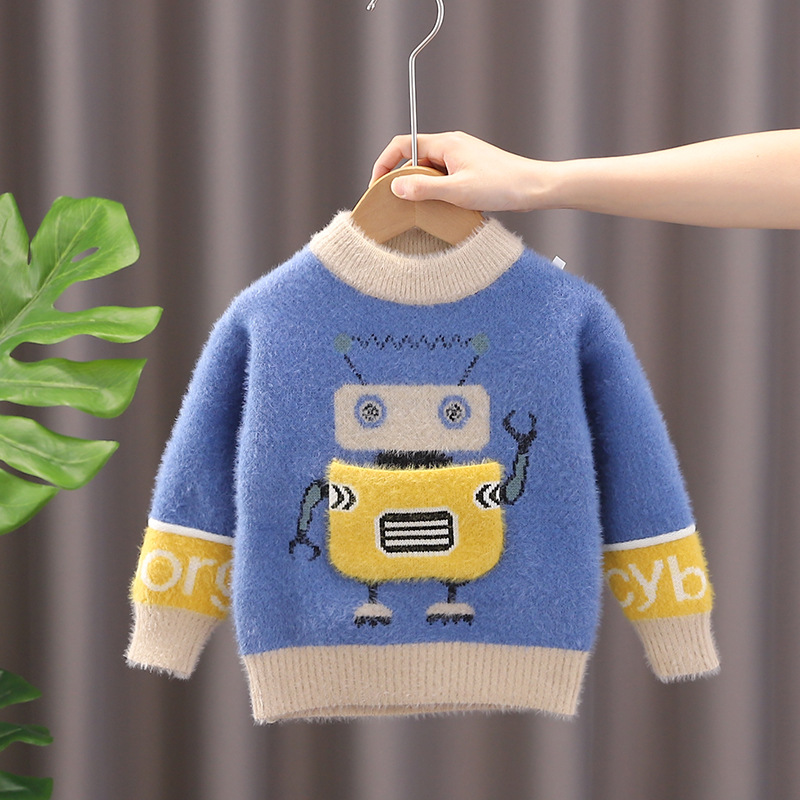 2022 가을과 겨울 소년의 스웨터베이스 셔츠 밍크 벨벳 소년의 니트 어린이 만화 세련된 탑스토어 가기