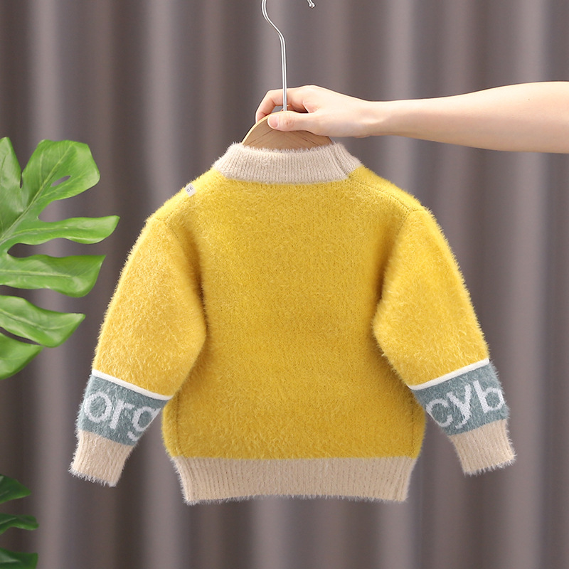 2022 가을과 겨울 소년의 스웨터베이스 셔츠 밍크 벨벳 소년의 니트 어린이 만화 세련된 탑