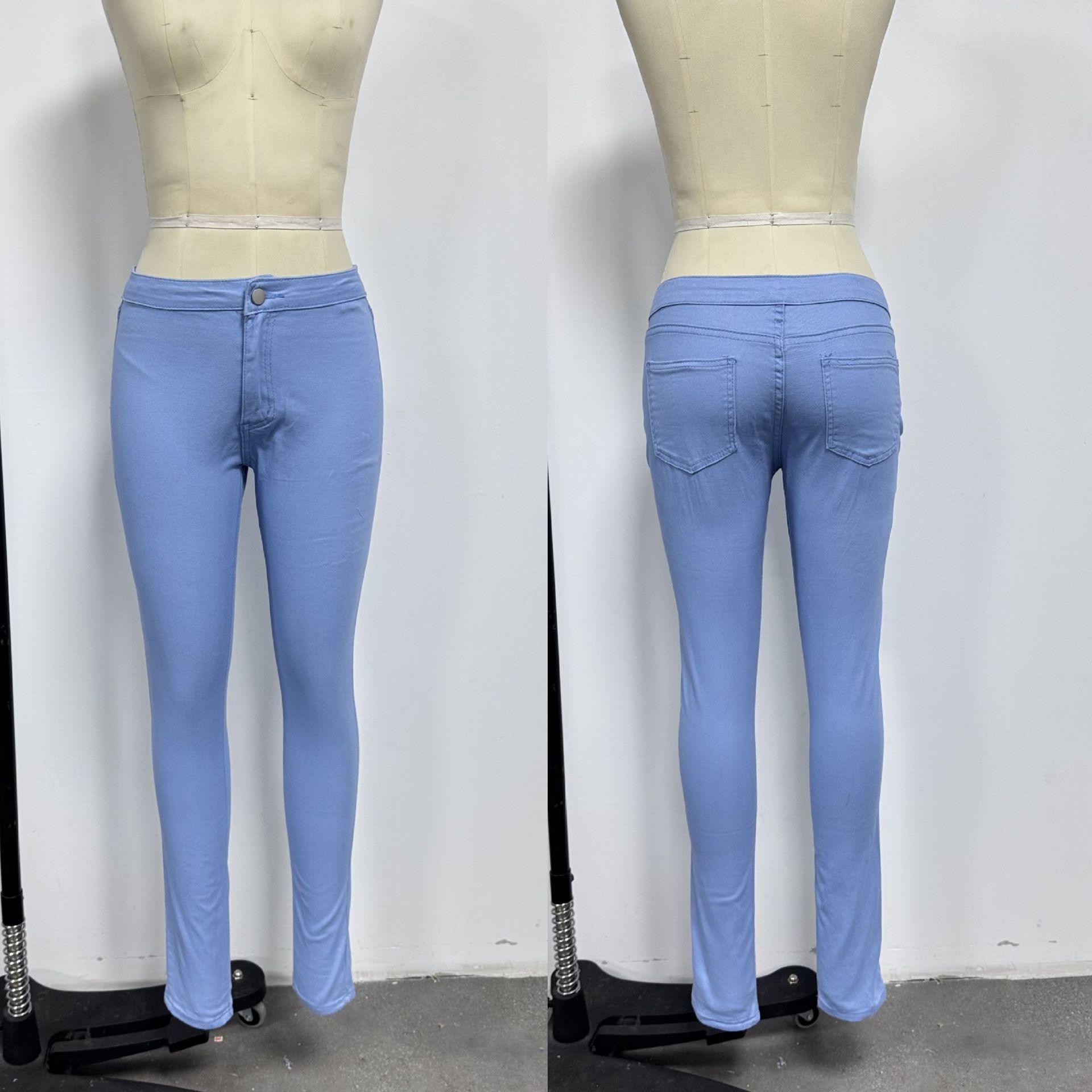 유럽 및 미국 무역용 TEMU 알리익스프레스 슬림핏 멀티컬러 신축성 있는 단색 데님 팬츠 여성용스토어 가기
