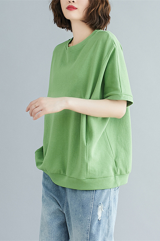 플러스 사이즈 플러스 지방 여성 의류 100kg 여름 느슨한 대형 살을 덮고 슬리밍 탑 솔리드 컬러 라운드 넥 반팔 티셔츠