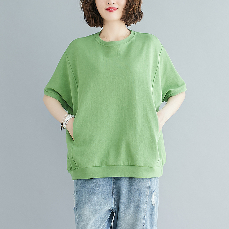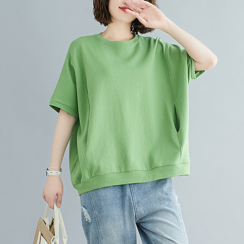 플러스 사이즈 플러스 지방 여성 의류 100kg 여름 느슨한 대형 살을 덮고 슬리밍 탑 솔리드 컬러 라운드 넥 반팔 티셔츠스토어 가기