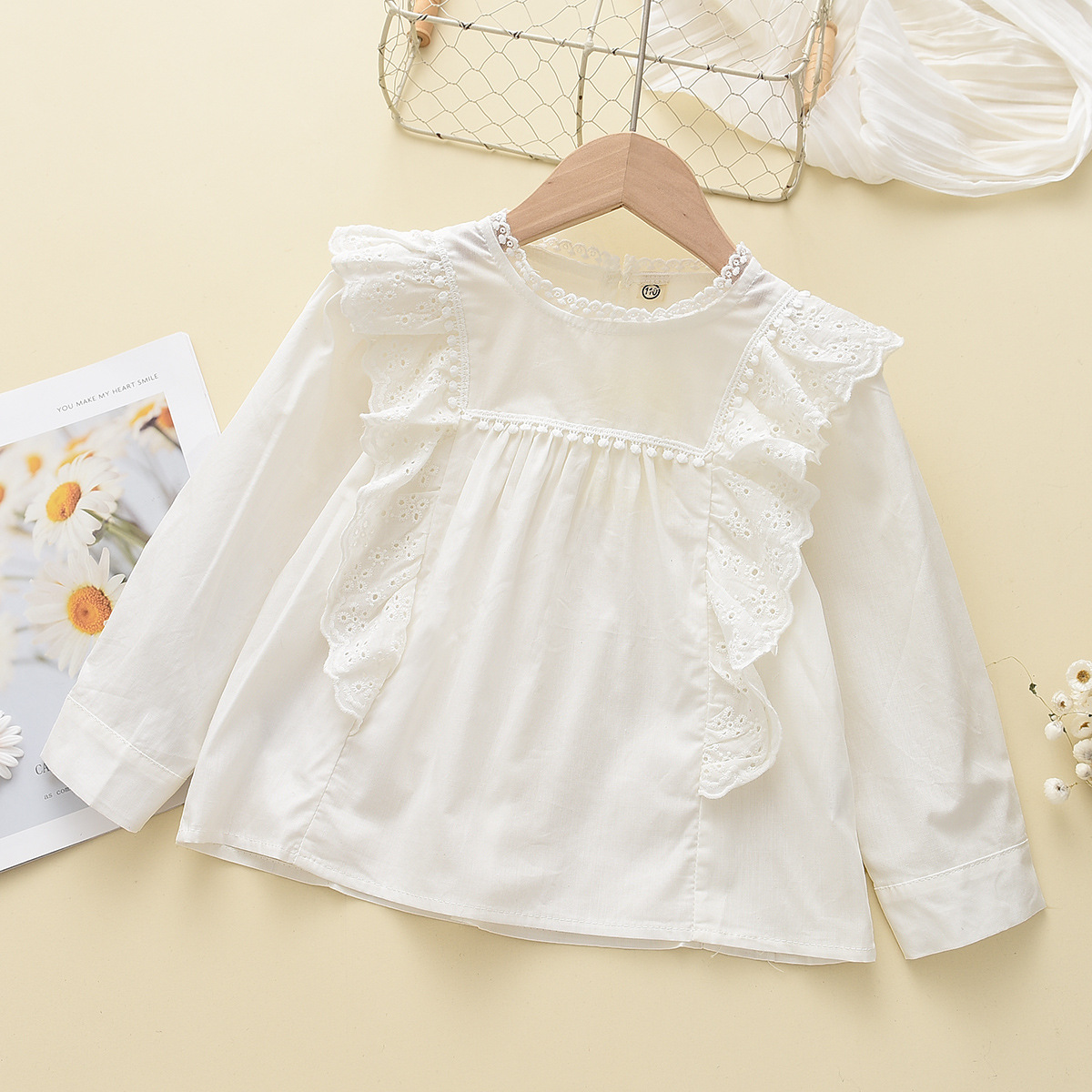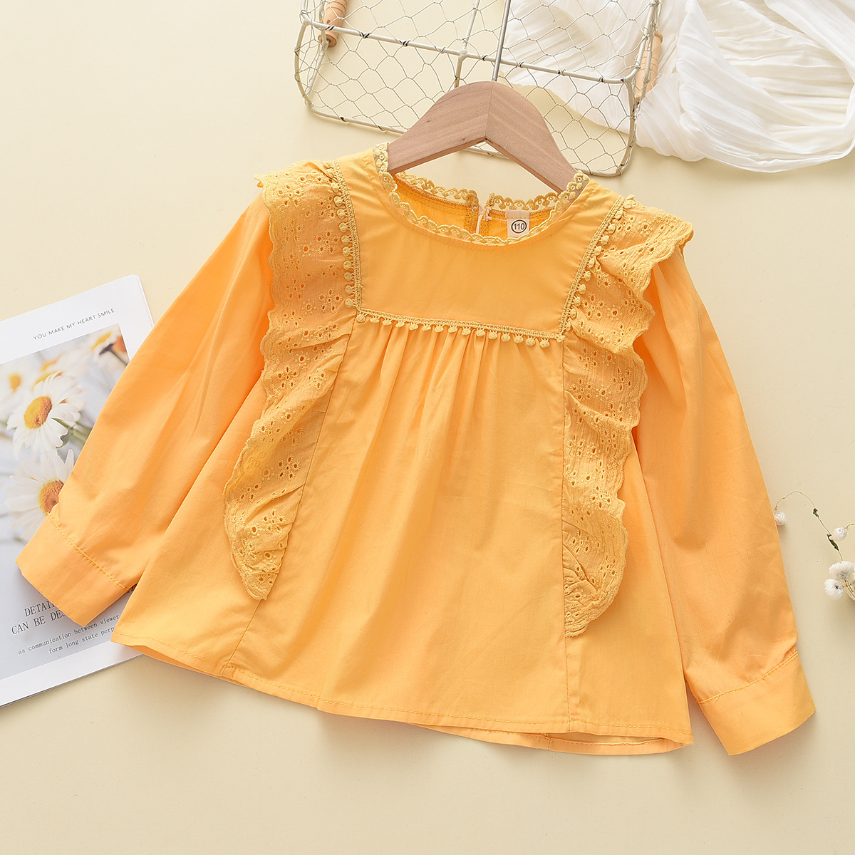 6197 소녀 곰팡이 레이스 셔츠 어린이 봄과 가을 긴 소매 탑 3-8 세 어린이 단색 블라우스 탑스토어 가기