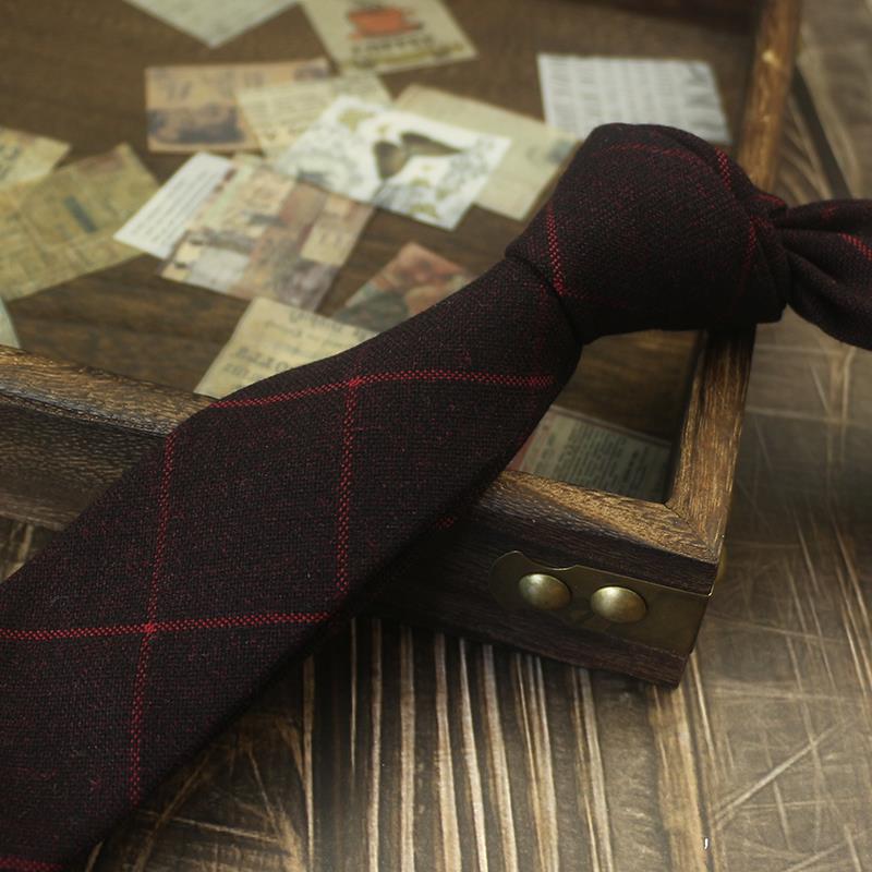 넥타이 남자의 한국식 캐주얼 모든 경기 여자의 다크 레드 다크 그린 격자 무늬 6cm 좁은 판 학생 비즈니스 원피스 개인 손 넥타이