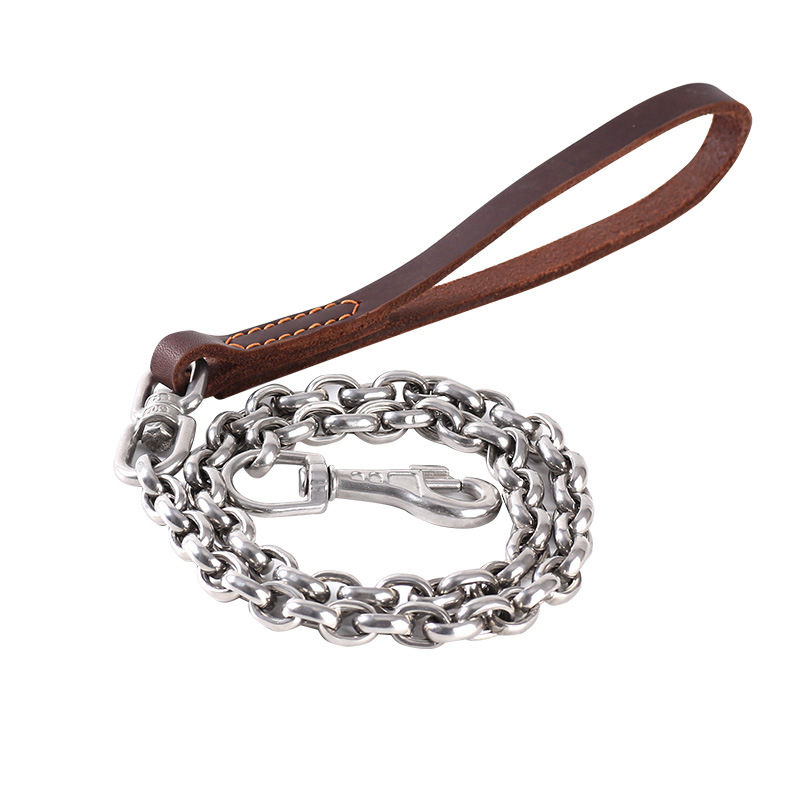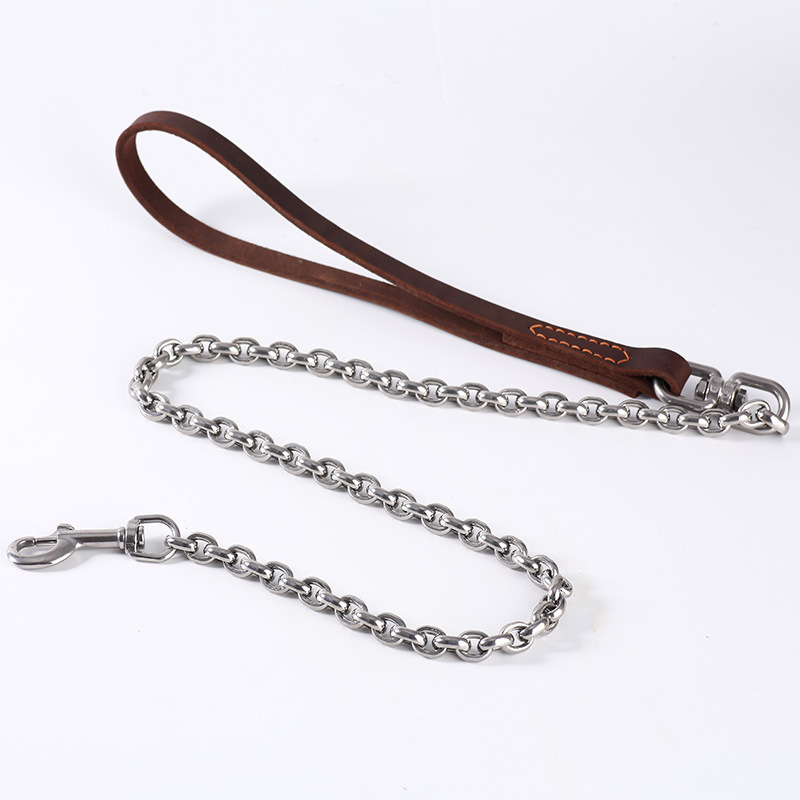 소가죽 손잡이 스테인레스 스틸 견인 로프 중형 및 대형 개 체인 물림 방지 견인 로프 개 체인 강한 견인 로프