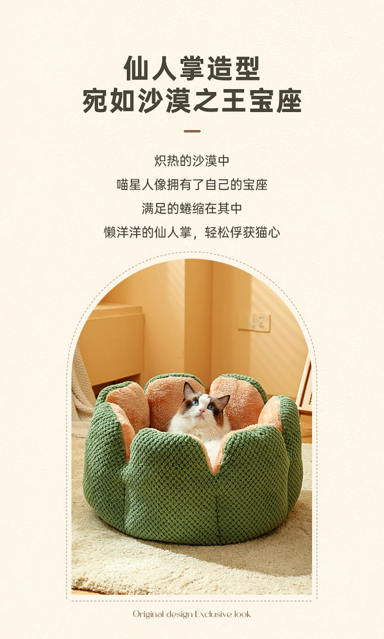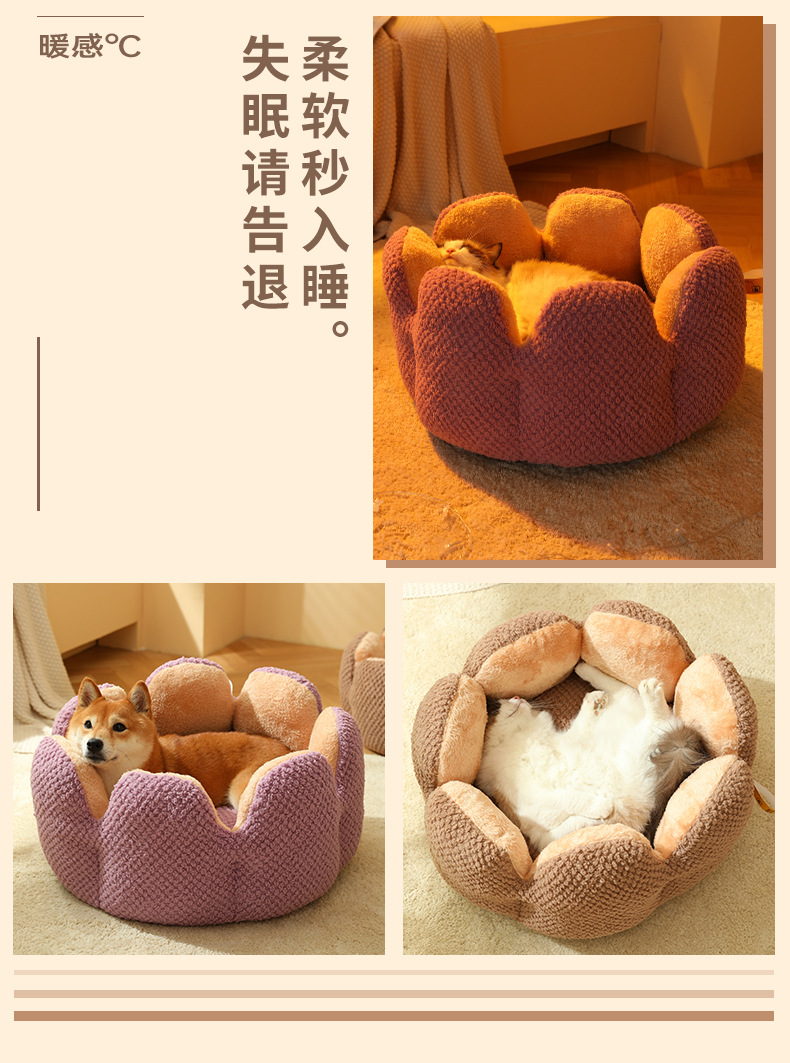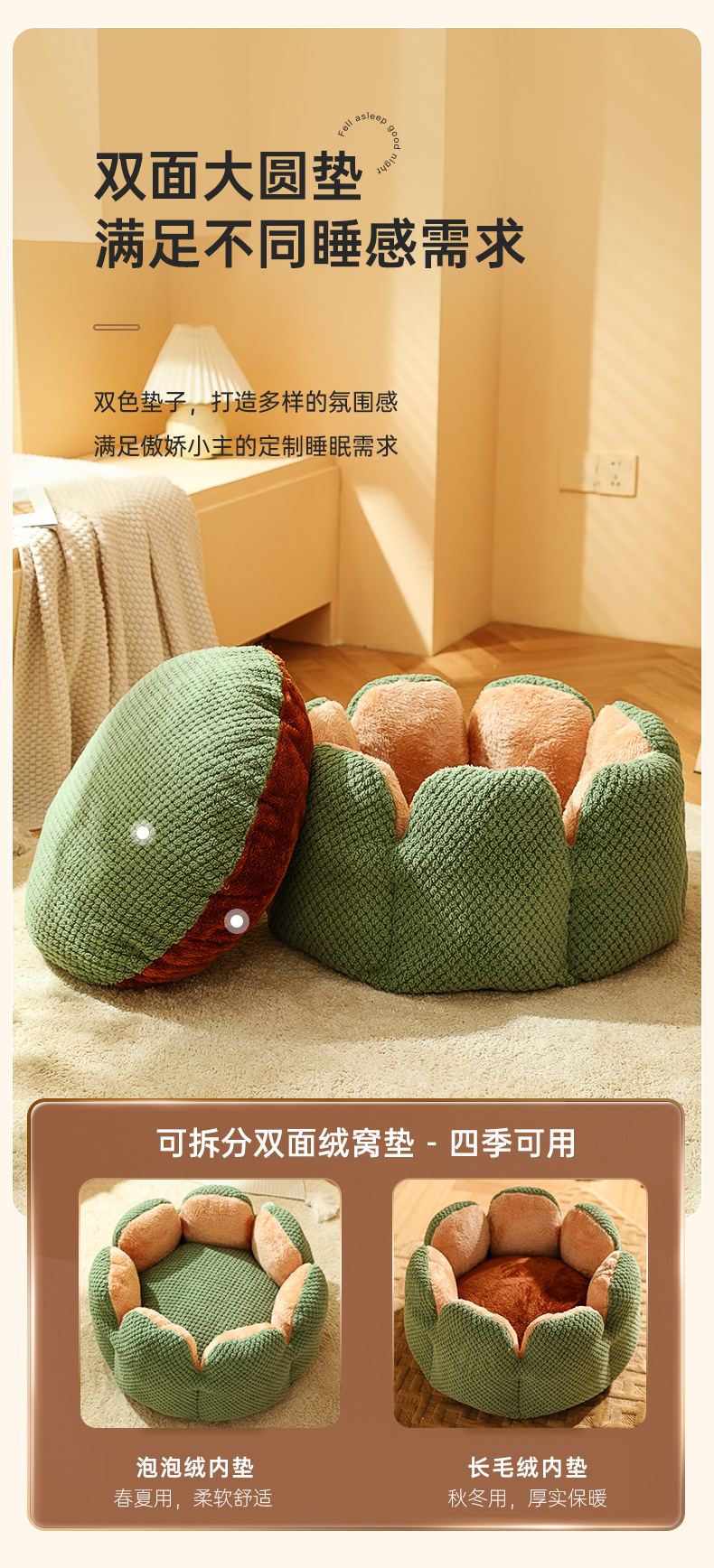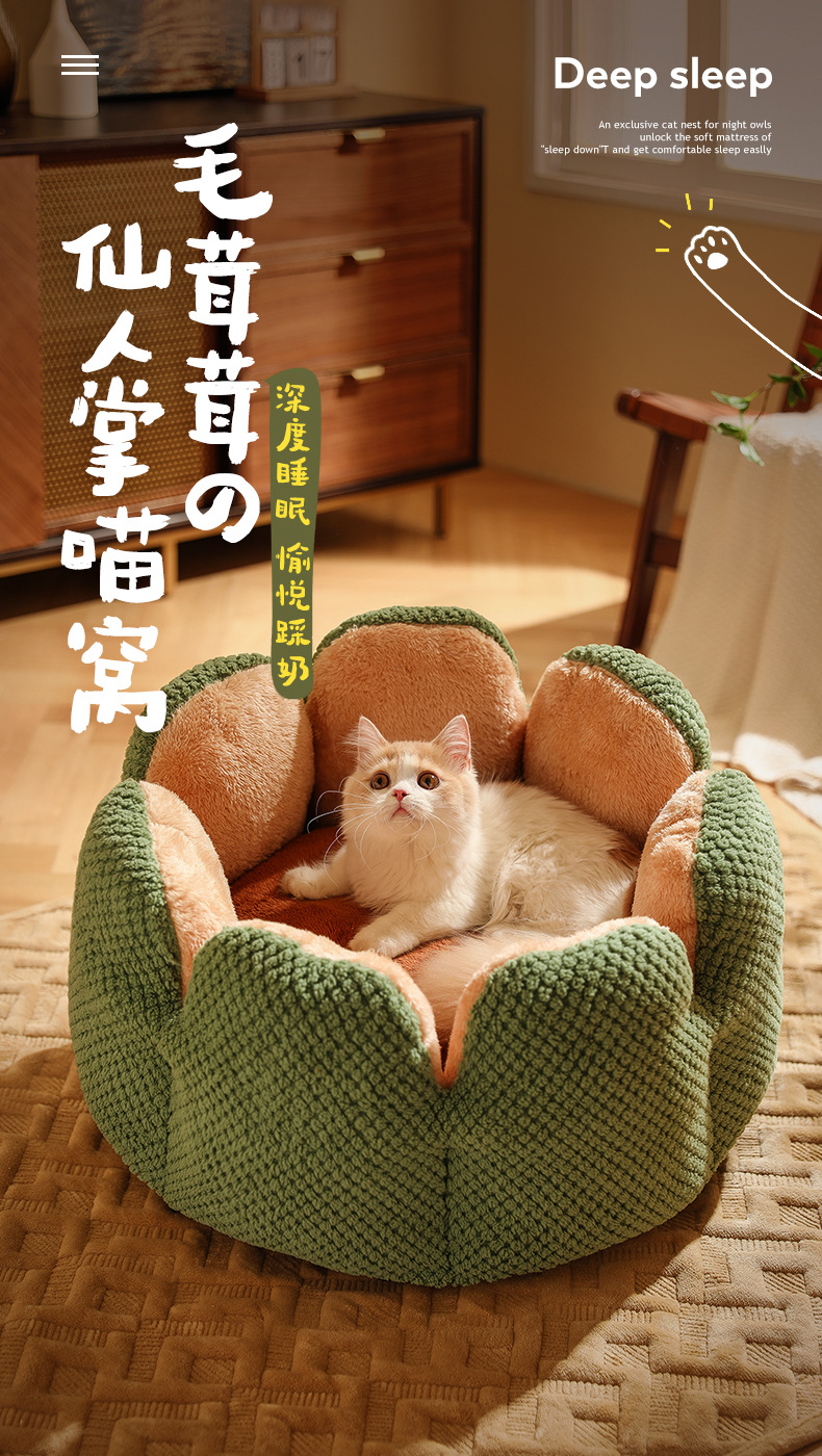 새로운 애완동물 둥지 선인장 꽃잎 모양 둥지 대공간 소프트 따뜻한 수면 고양이와 개 둥지 매트 도매스토어 가기