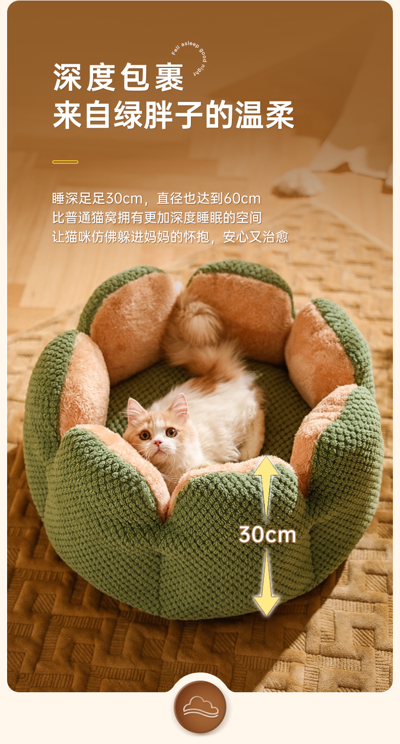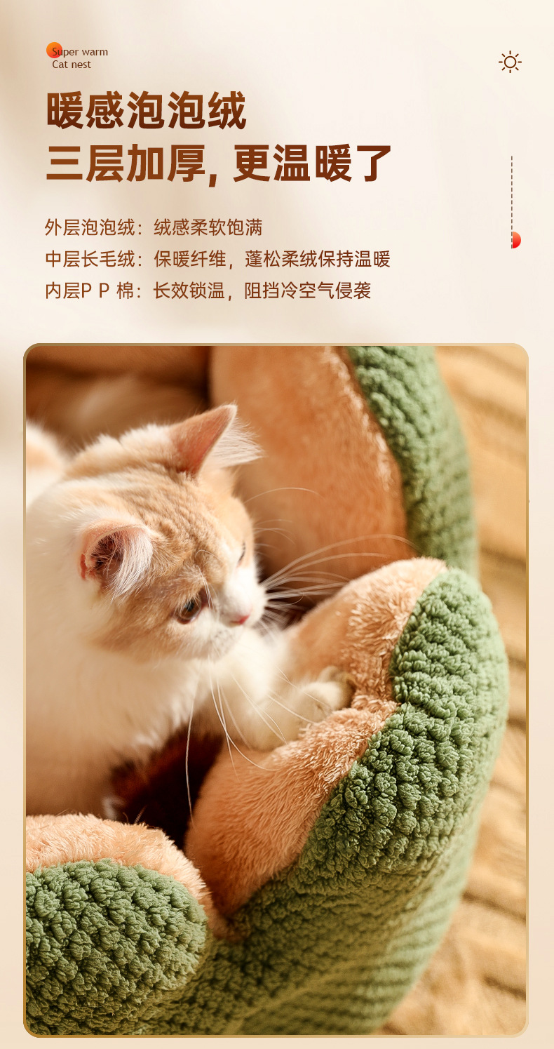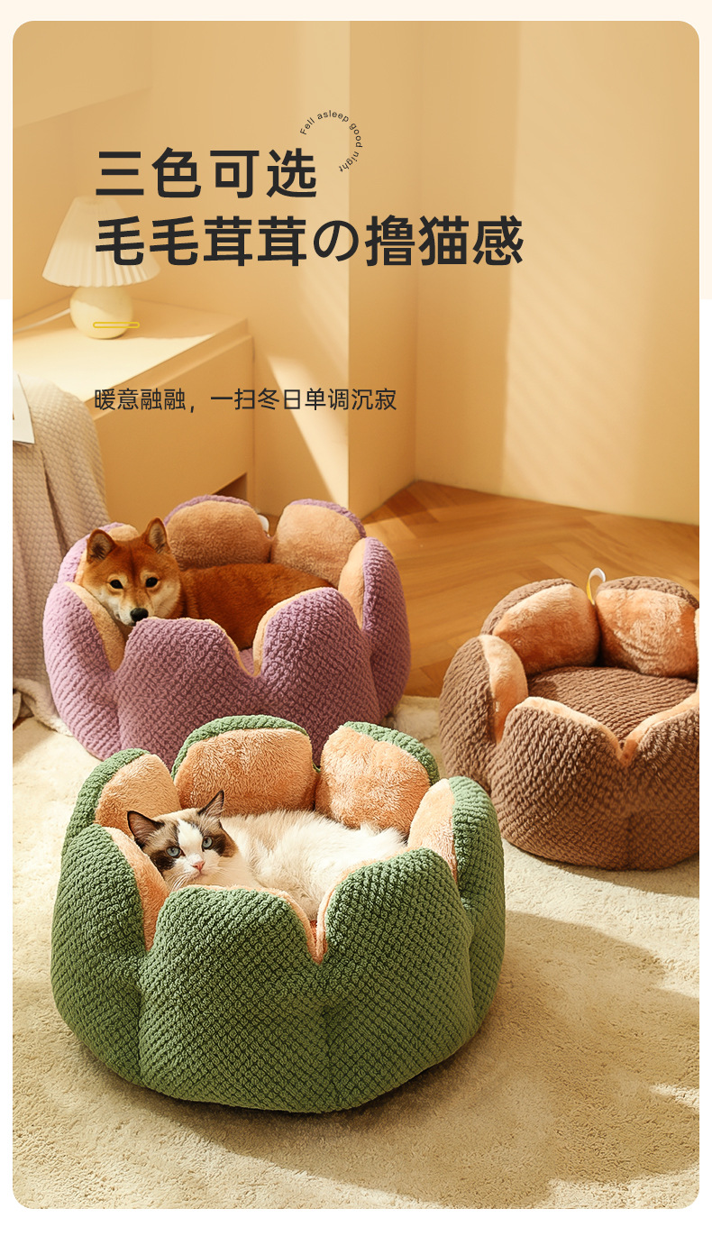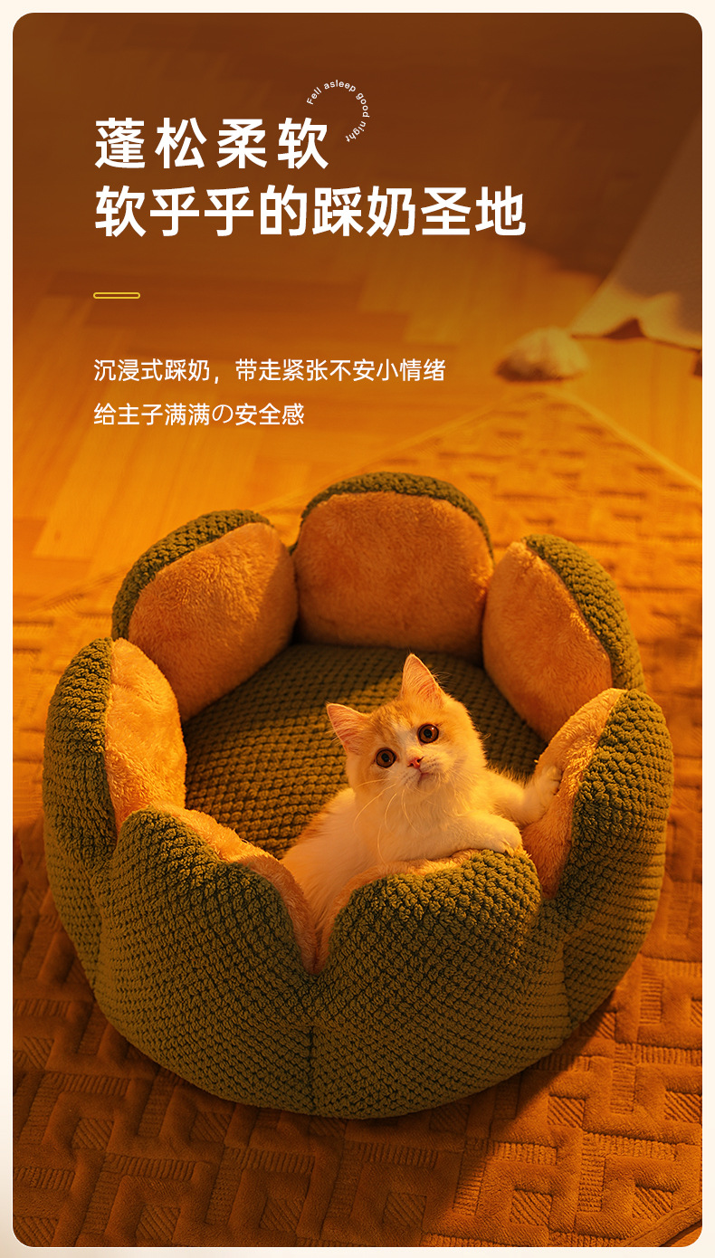 새로운 애완동물 둥지 선인장 꽃잎 모양 둥지 대공간 소프트 따뜻한 수면 고양이와 개 둥지 매트 도매스토어 가기