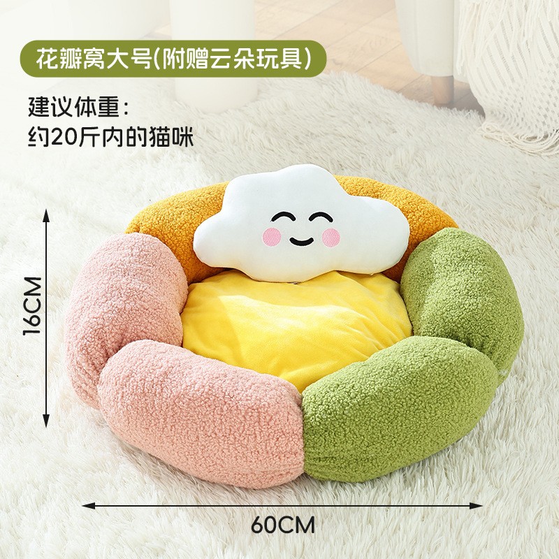 새로운 애완동물 둥지 선인장 꽃잎 모양 둥지 대공간 소프트 따뜻한 수면 고양이와 개 둥지 매트 도매