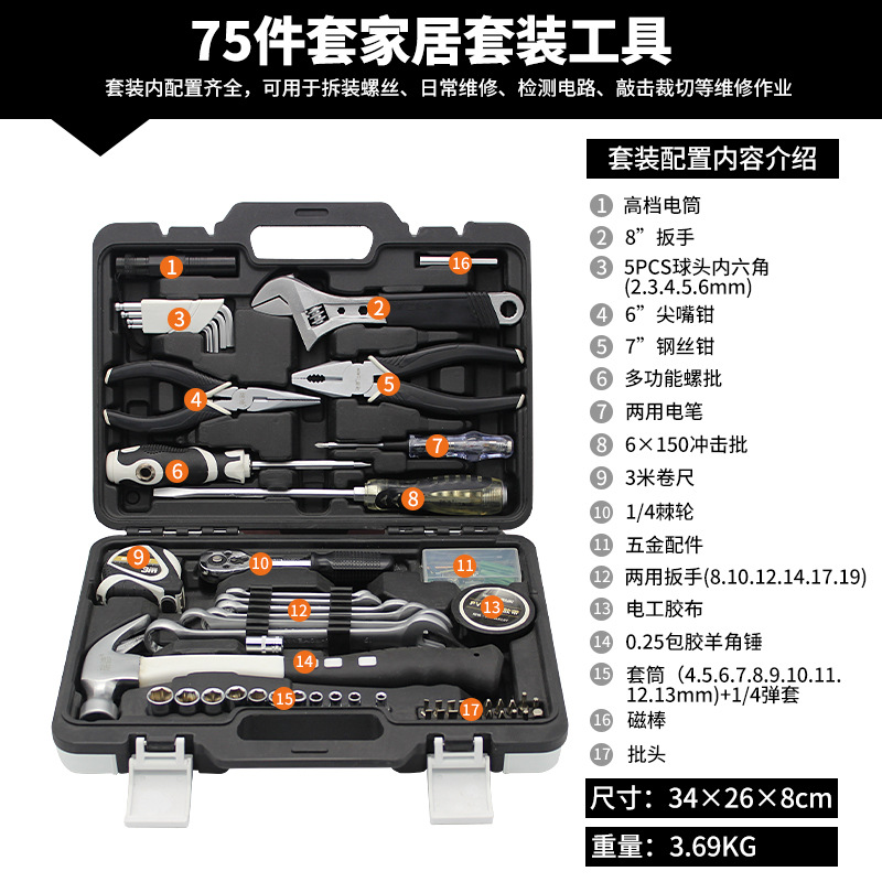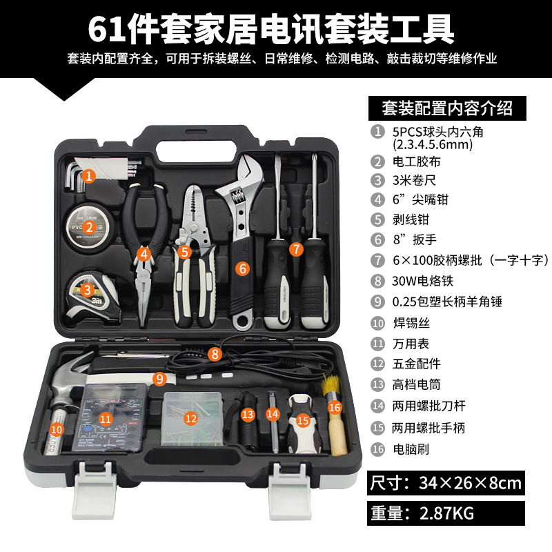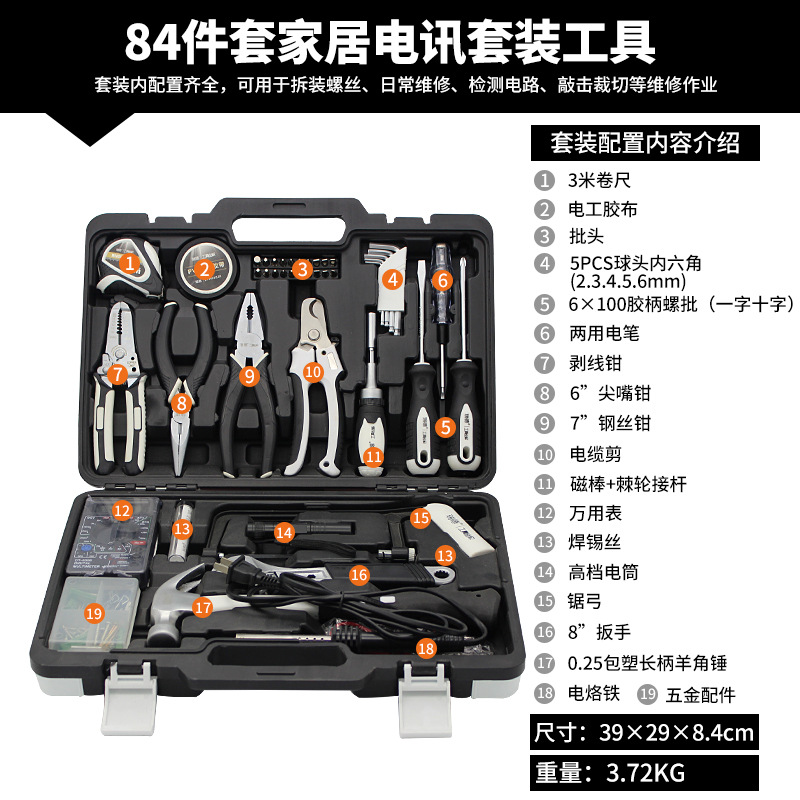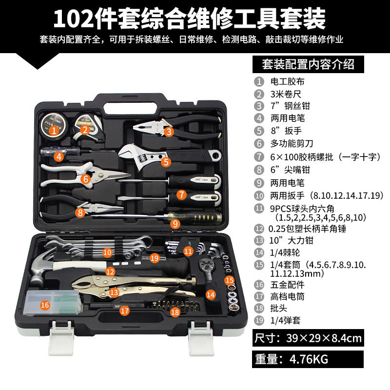 Rhett의 하드웨어 도구 조합 세트 가정용 수동 유지 보수 도구 상자 자동차 세트 선물 도매스토어 가기