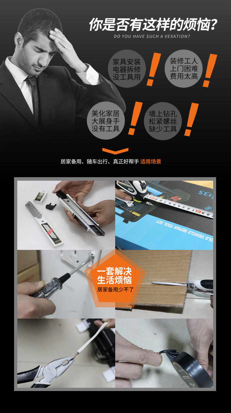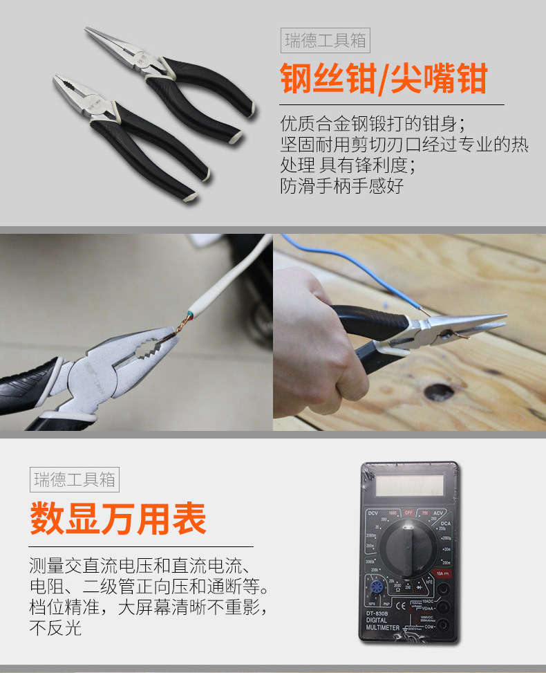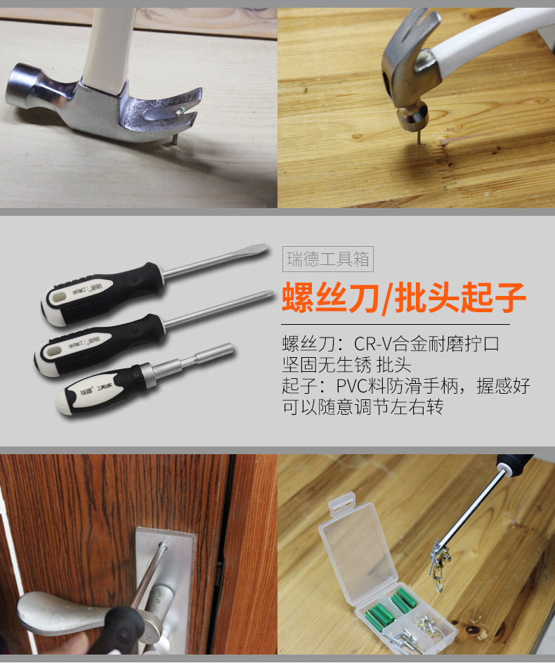 Rhett의 하드웨어 도구 조합 세트 가정용 수동 유지 보수 도구 상자 자동차 세트 선물 도매