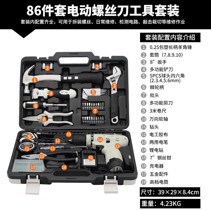 • 가정용 전동 드라이버 세트 86 장 [모델 101086]