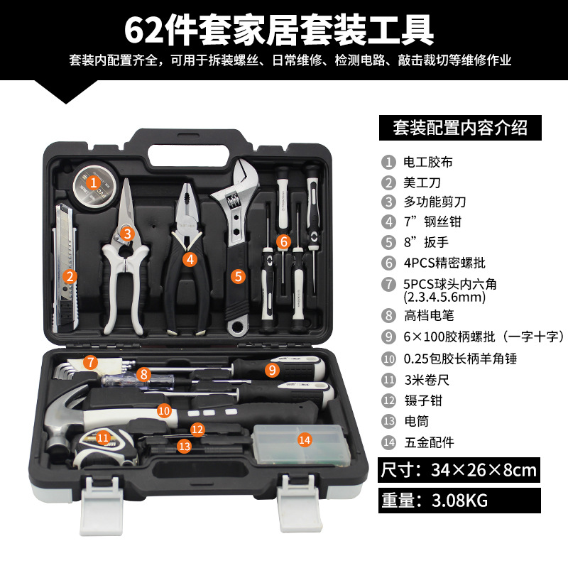 • 가정용 공구 62 장 세트 [모델 1062]