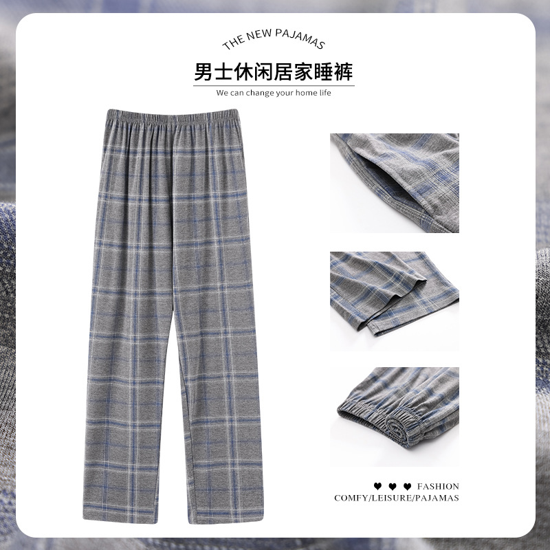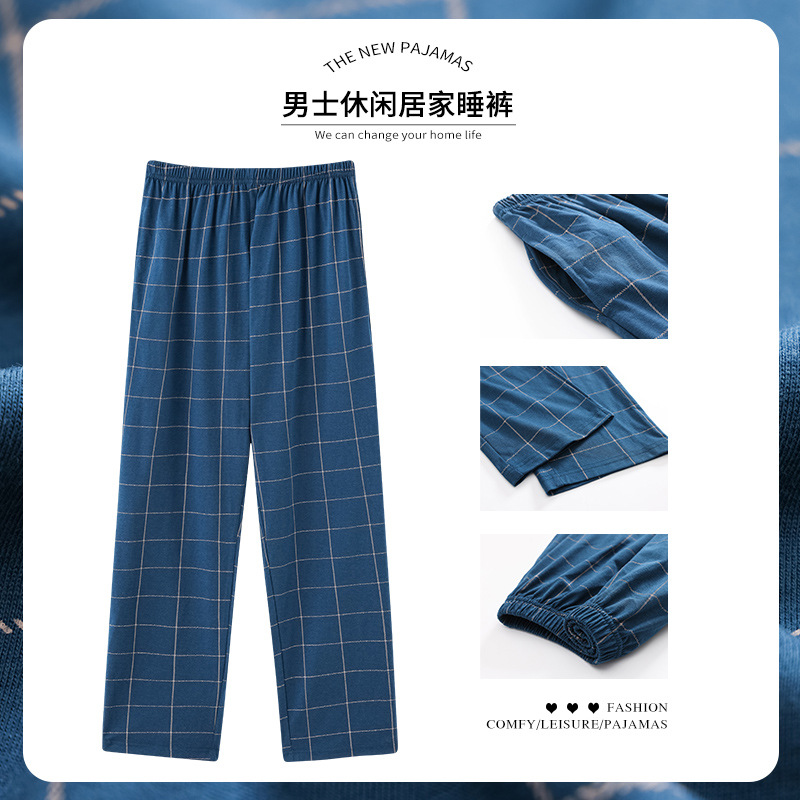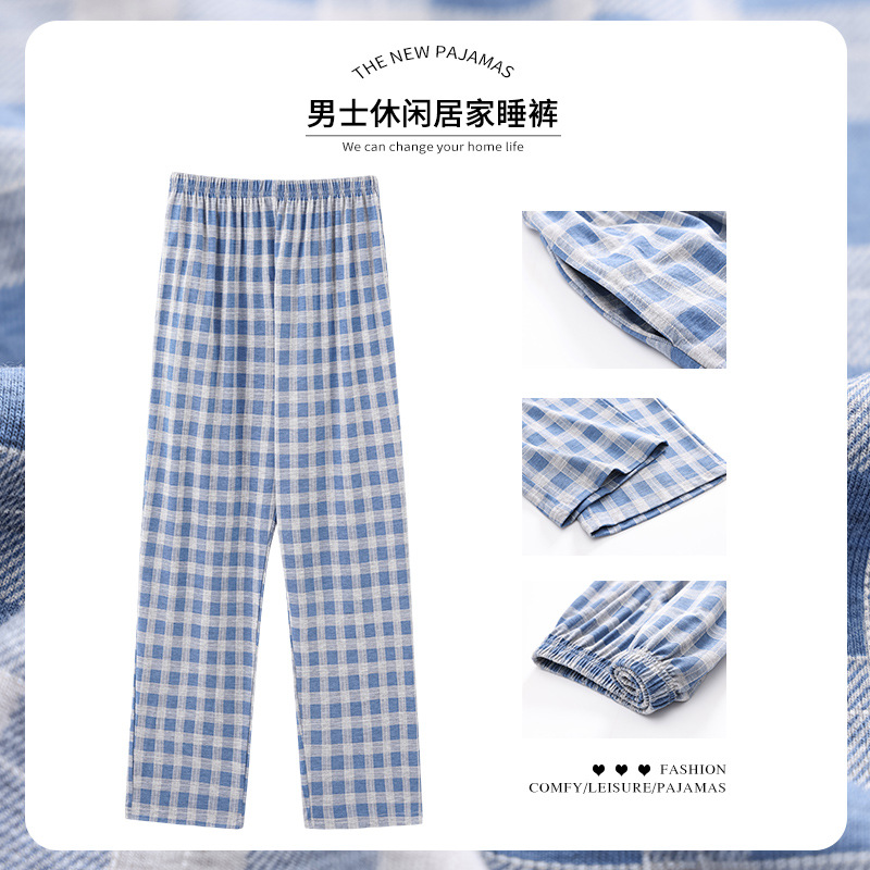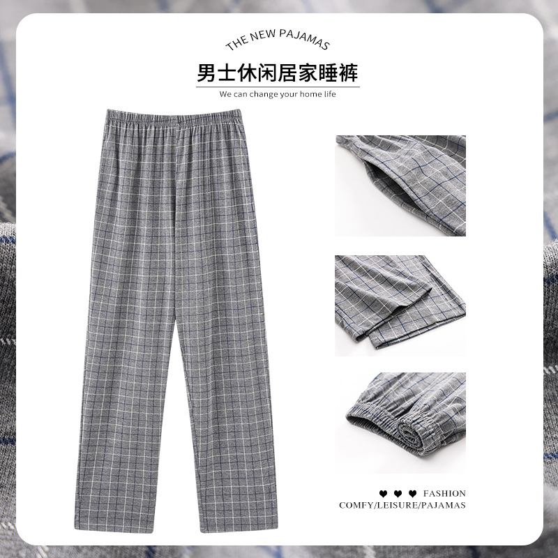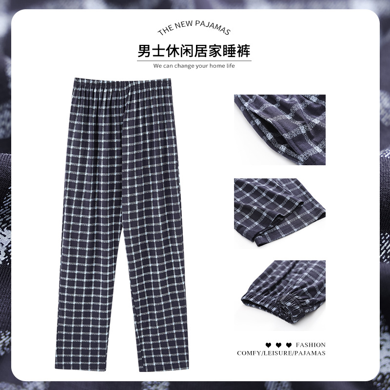 격자 무늬 일본 간단한 파자마 바지 남성용 봄과 여름 순수한면 바지 슈퍼 플러스 사이즈 느슨한 남성용 홈 바지 5XL 크기스토어 가기
