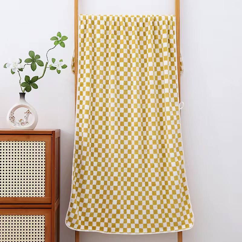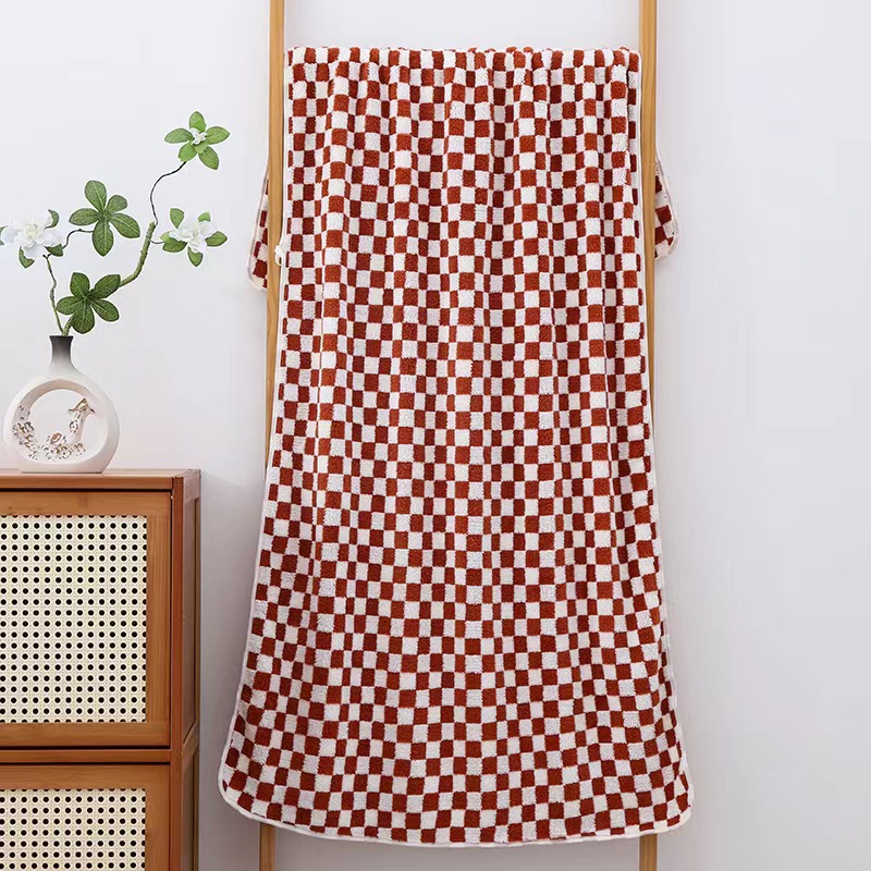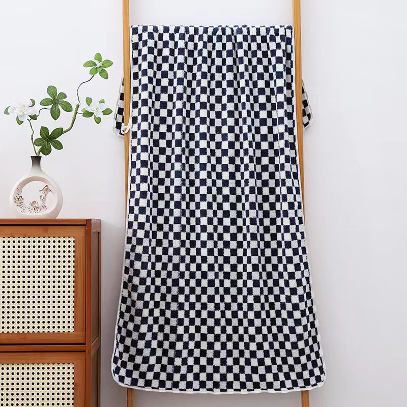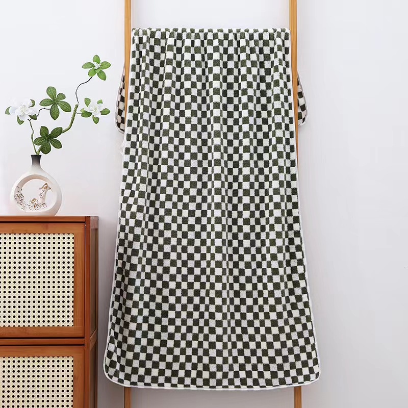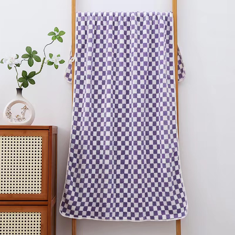 세안 및 목욕 가정용 부드럽고 흡수성 커플을 위한 도매 두꺼운 산호 벨벳 바둑판 수건 및 목욕 수건 3피스 세트스토어 가기