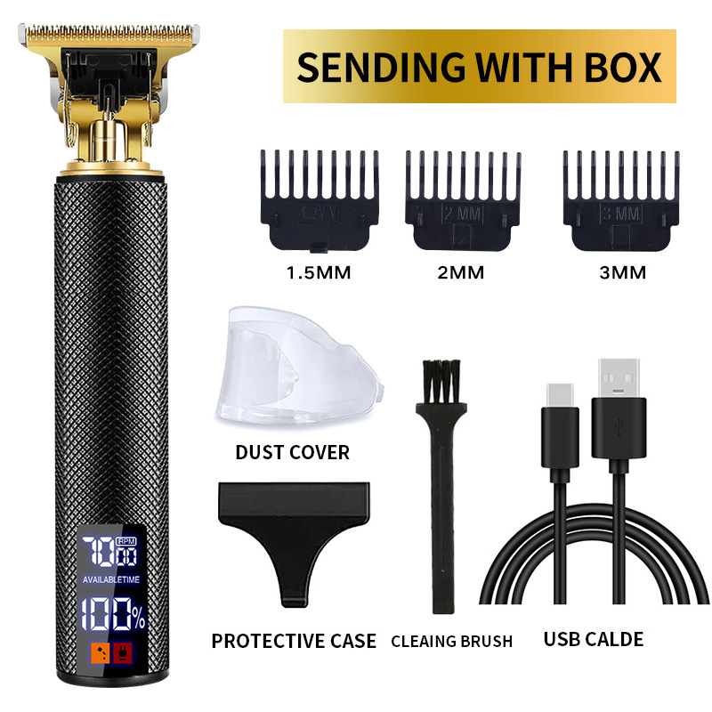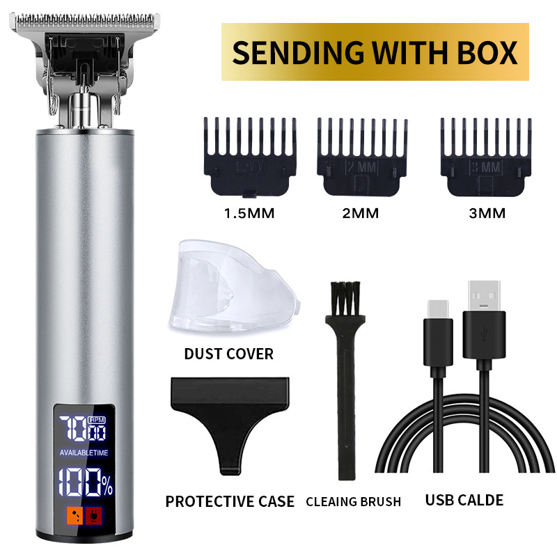 남성용 금속 t9 헤어 클리퍼 도매 헤어 면도 헤드 전기 클리퍼 레트로 오일 헤드 조각 디지털 디스플레이 헤어 클리퍼