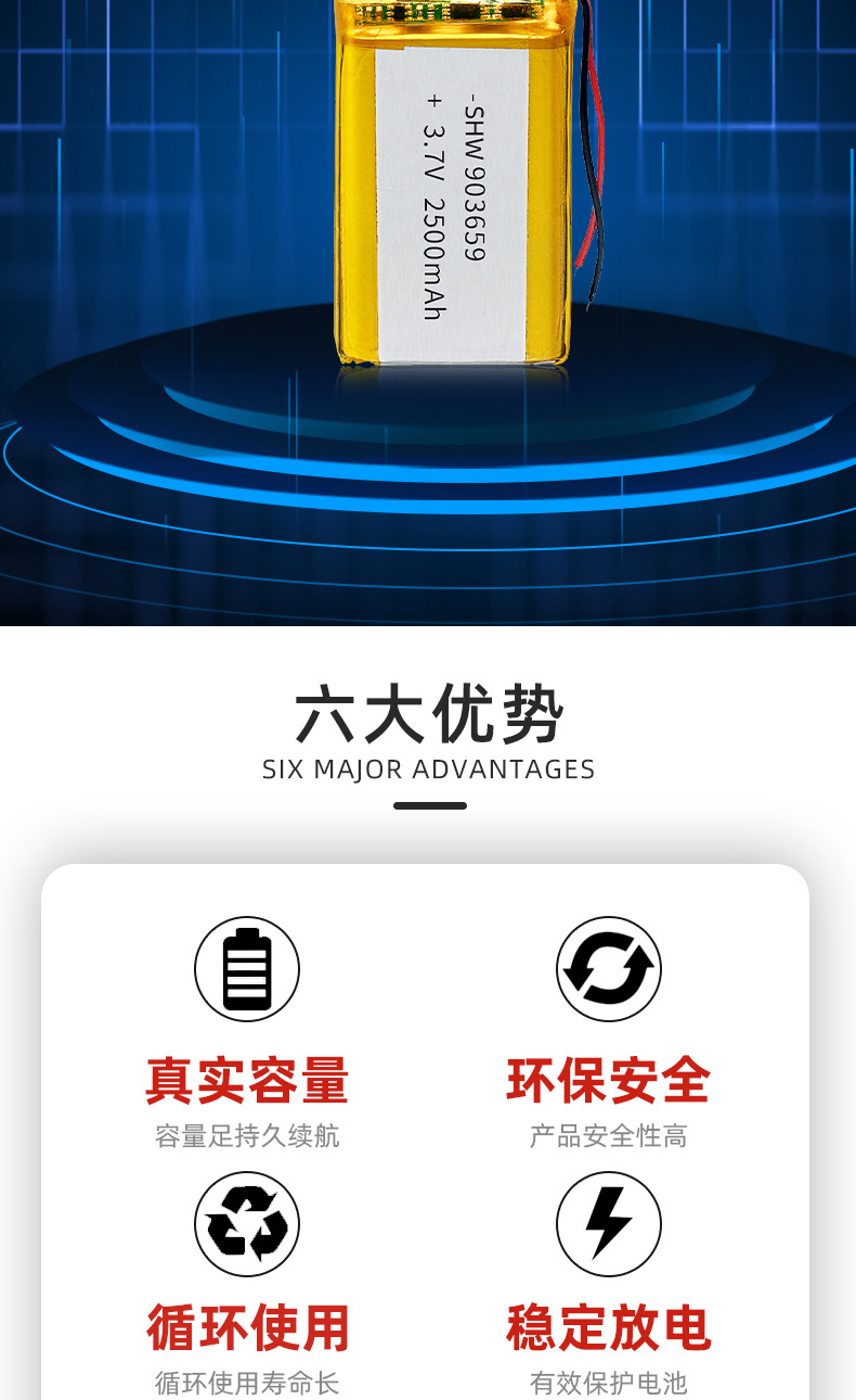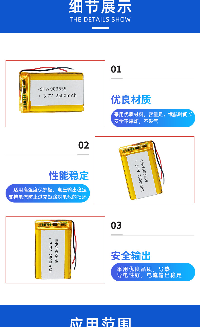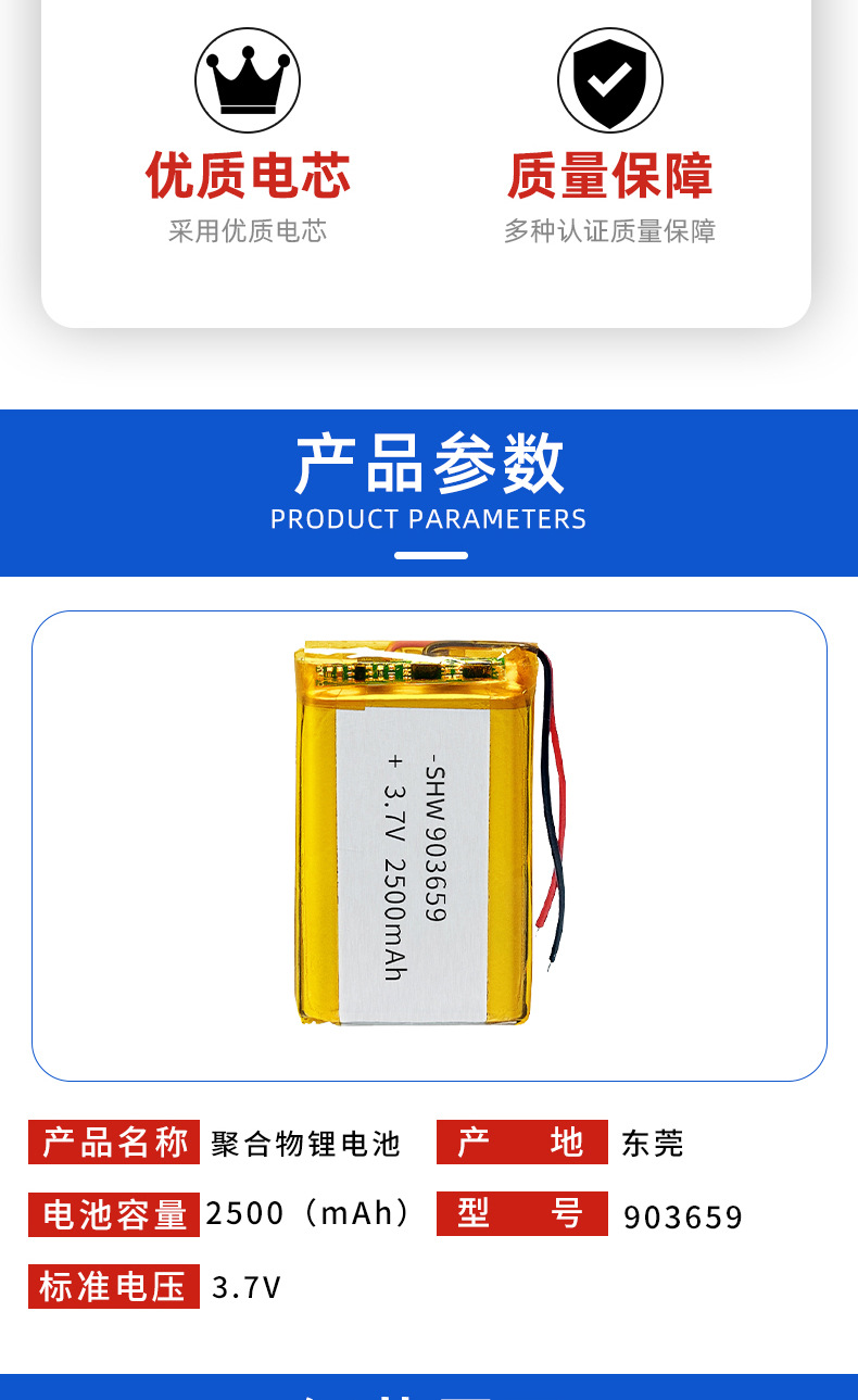동관 공장 903659 폴리머 리튬 배터리 3.7V2500mAh 무전기 충전식 지문 잠금장치스토어 가기