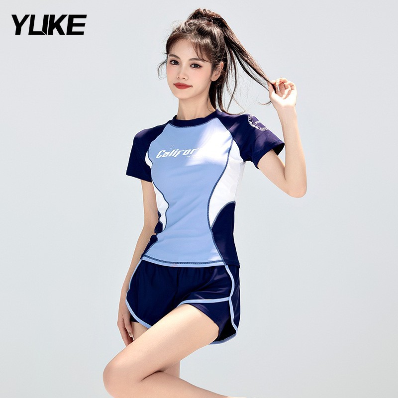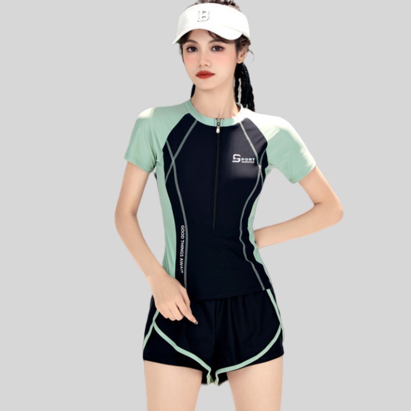 수영복 성인 수영복 여성용 2022 New 플러스 사이즈 Split 투피스 반팔 학생 온천 보수 수영복