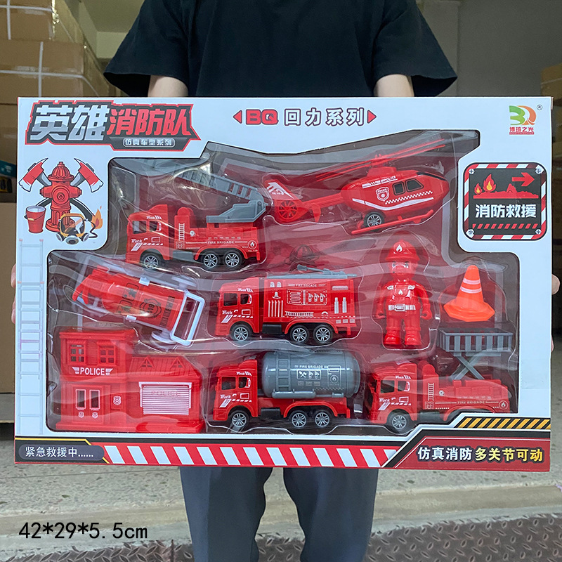 무료 배송 어린이 장난감 엔지니어링 트럭 소방차 모델 시뮬레이션 관성 풀백 소년 선물 상자 세트 도매 마구간스토어 가기