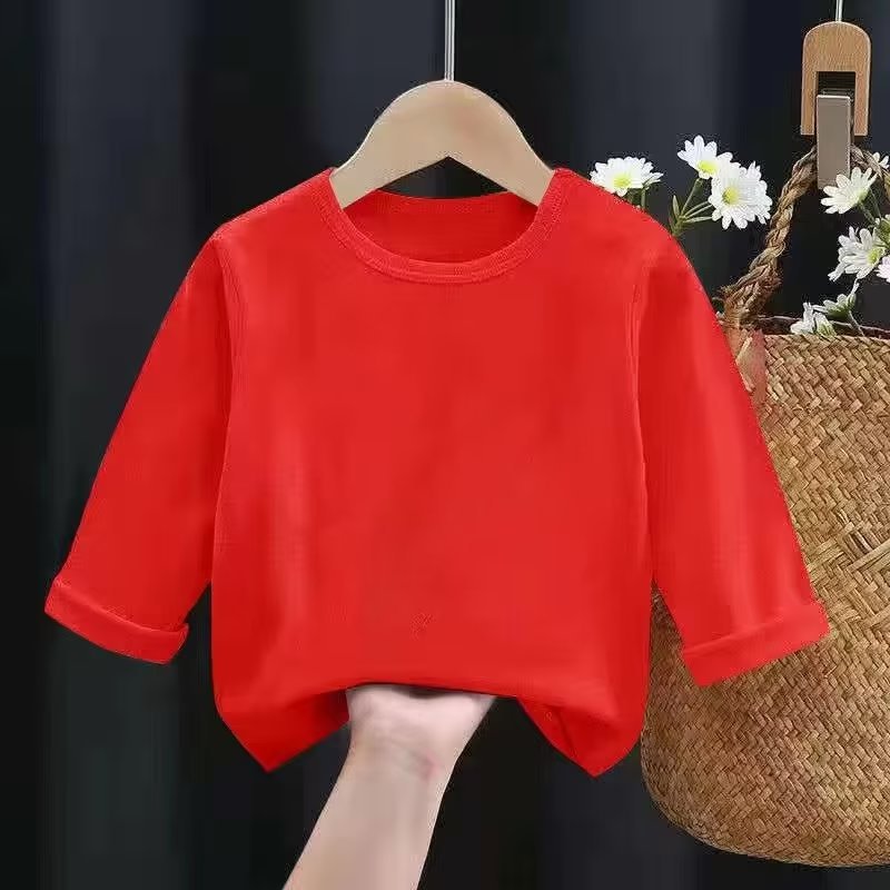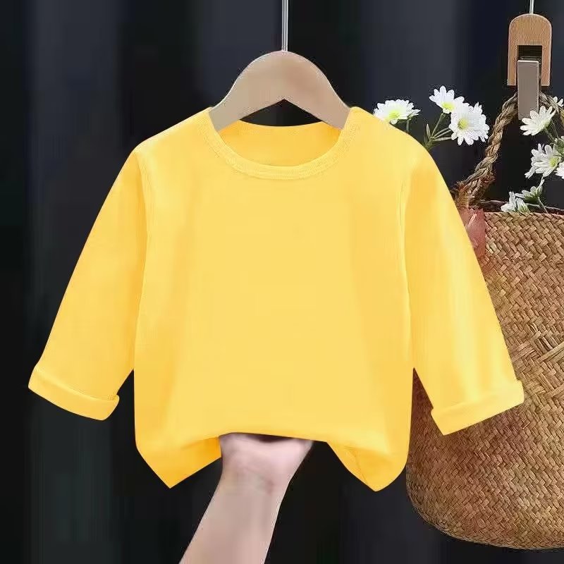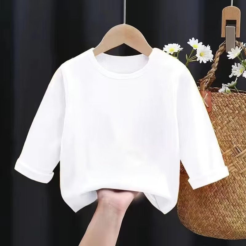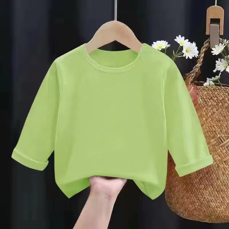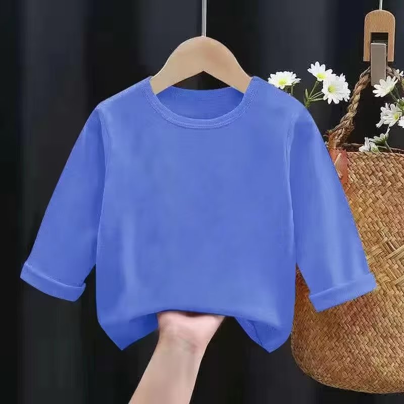 어린이 크루넥 솔리드 컬러 베이스 셔츠 여아 남아 긴팔 티셔츠 루즈한 티셔츠 탑 트렌디 어린이 티셔츠 블랭크 버전
