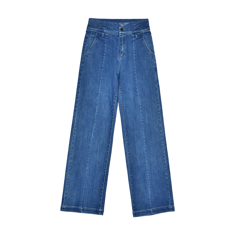 [Shengdu] SNDU26 봄 신상 레트로 루즈핏 하이웨이스트 스트레치 롱팬츠 와이드 레그 키높이 여성용 청바지스토어 가기