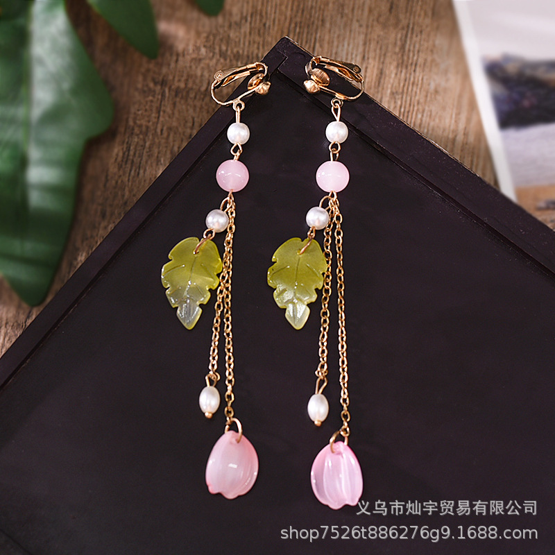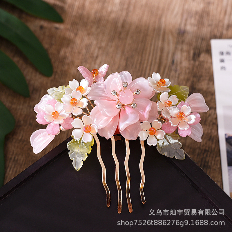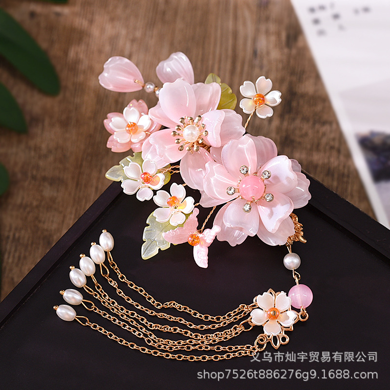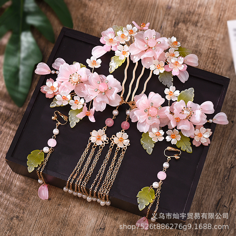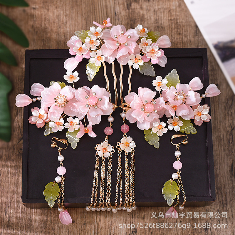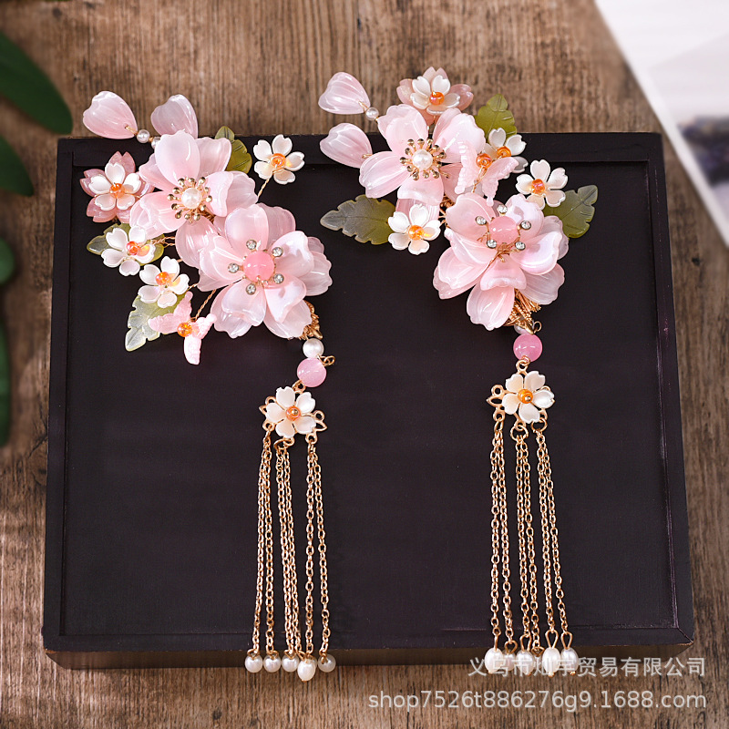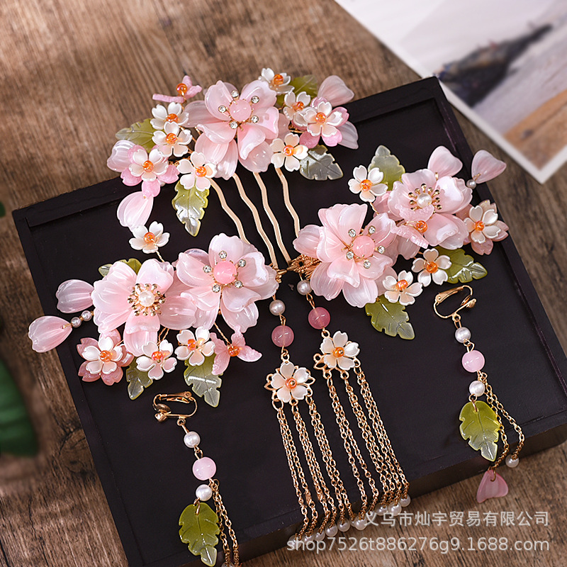 요정 Hanfu 모자 골동품 헤어 액세서리의 전체 세트 핑크 의상 쌍 클립 헤어 빗 술 단계 쉐이크 헤어 클립 빗 액세서리스토어 가기