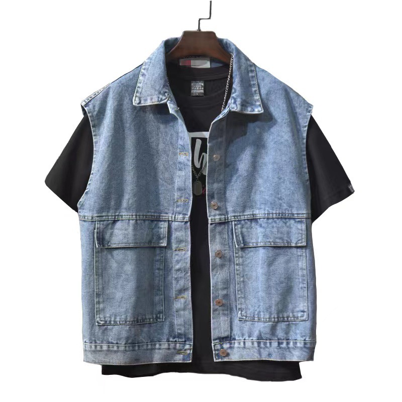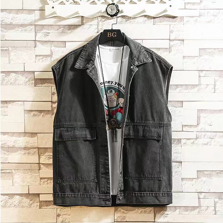 가을 의류 한국식 느슨한 힙합 in 조끼 데님 재킷 남자의 십대 작업복 민소매 유행 조끼 재킷스토어 가기