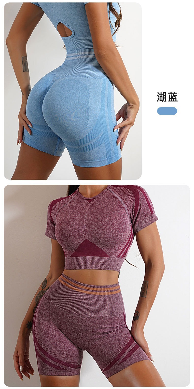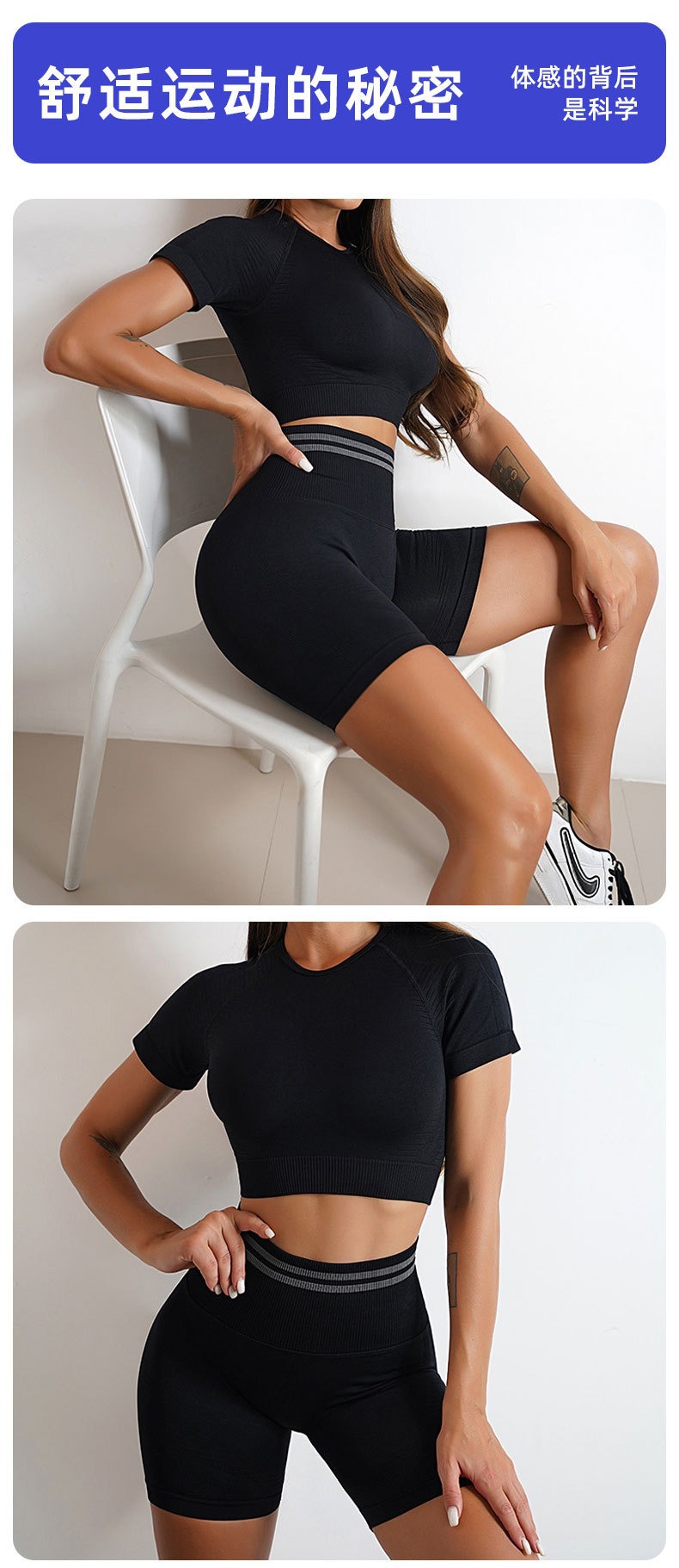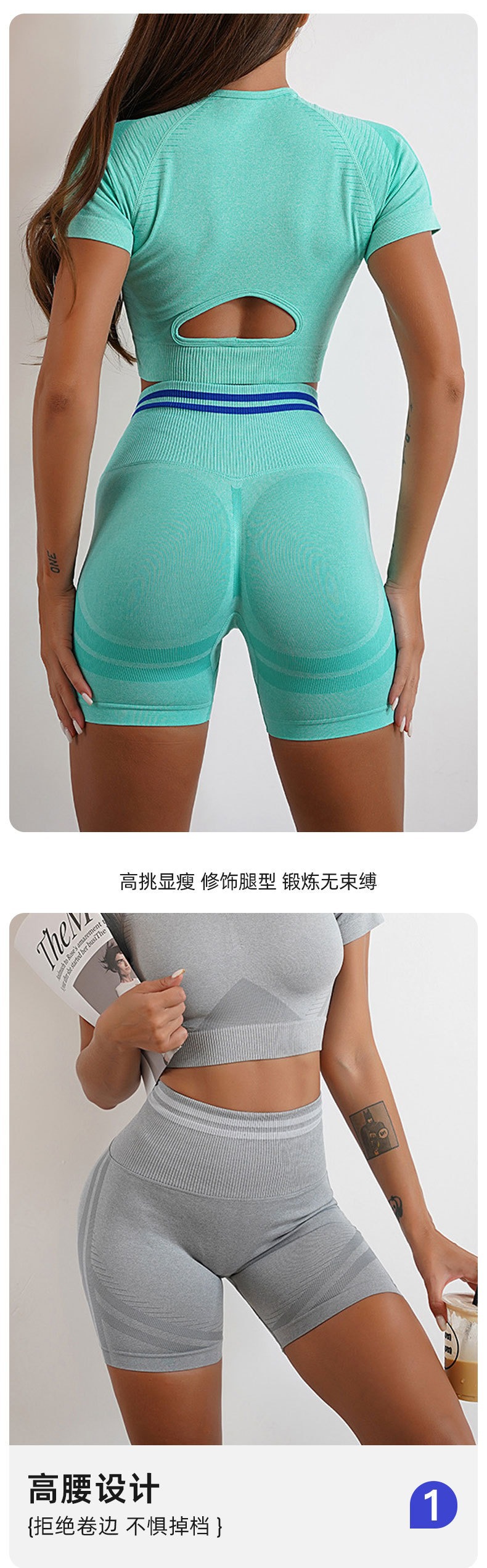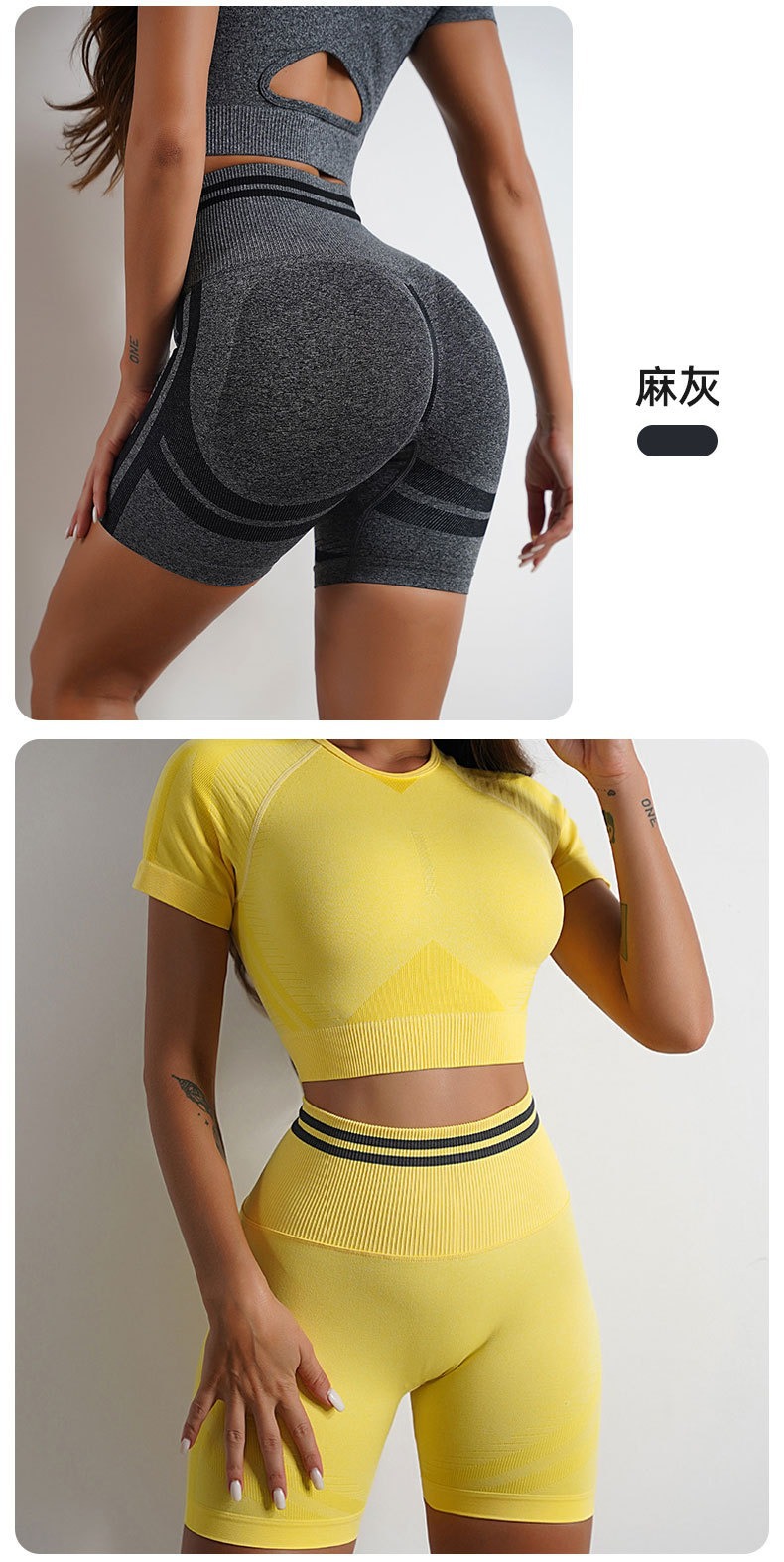 크로스보더 요가 양말 세트 복숭아색 하이웨이스트 피트니스 반바지 힙업 타이트 스포츠 팬츠 아름다운 등라인 반팔 투피스 여성용스토어 가기