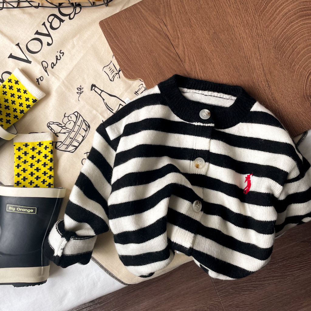 TXK 가을 겨울 아동용 스웨터 가디건 남아 캐주얼 코트 2024 여아 울 가디건 스트라이프 한국 스타일 보온성