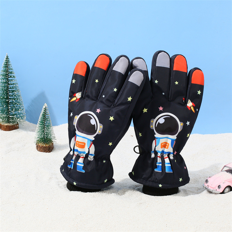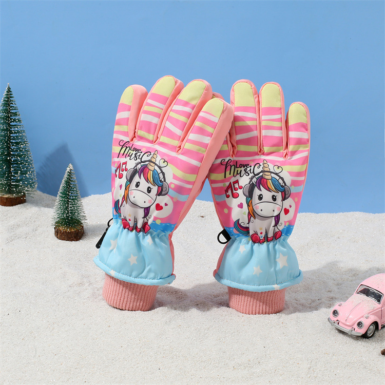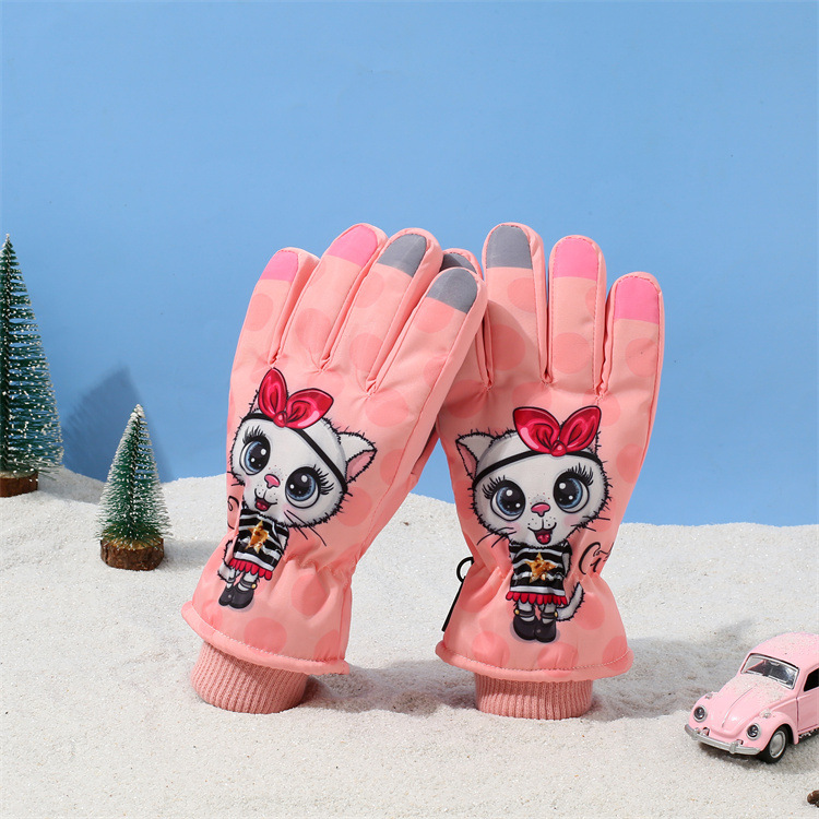 어린이 겨울 장갑 새로운 야외 방수 방풍 플러스 벨벳 두꺼운 따뜻한 만화 남성과 여성 스키 장갑 도매스토어 가기