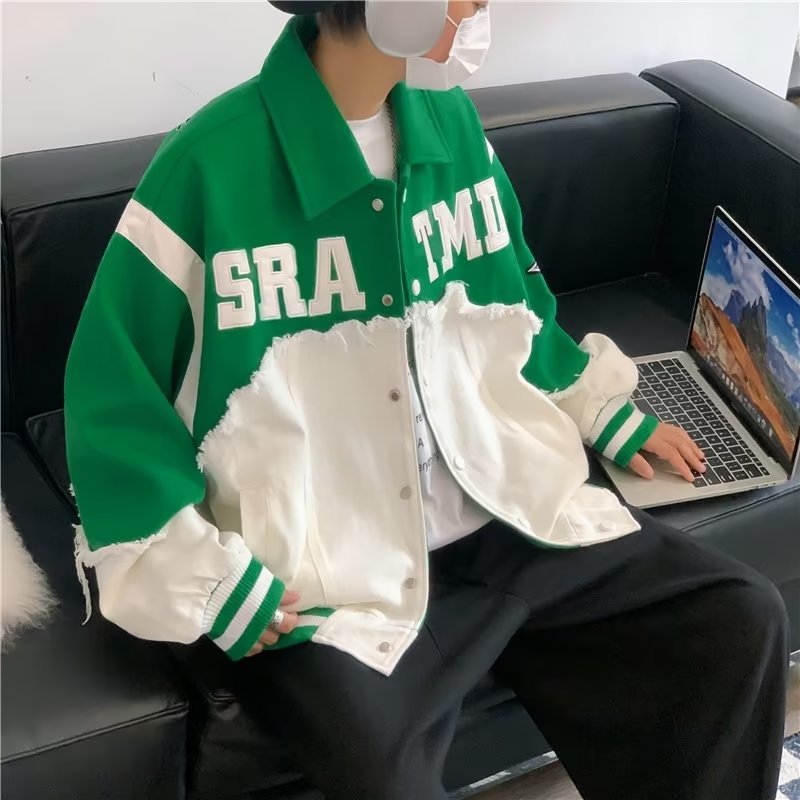 데님 바느질 모직 코트 남성 가을 미국 하이 스트리트 패션 브랜드 힙합 패션 느슨한 커플 모직 코트 착용