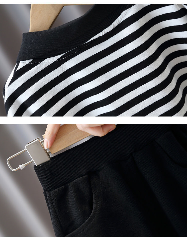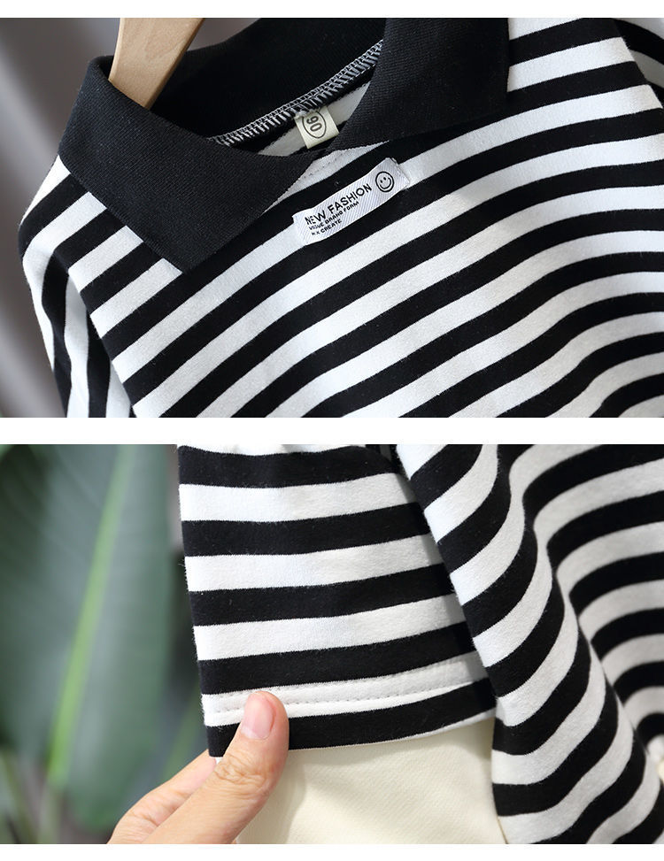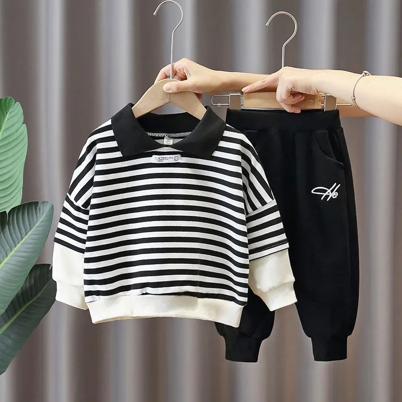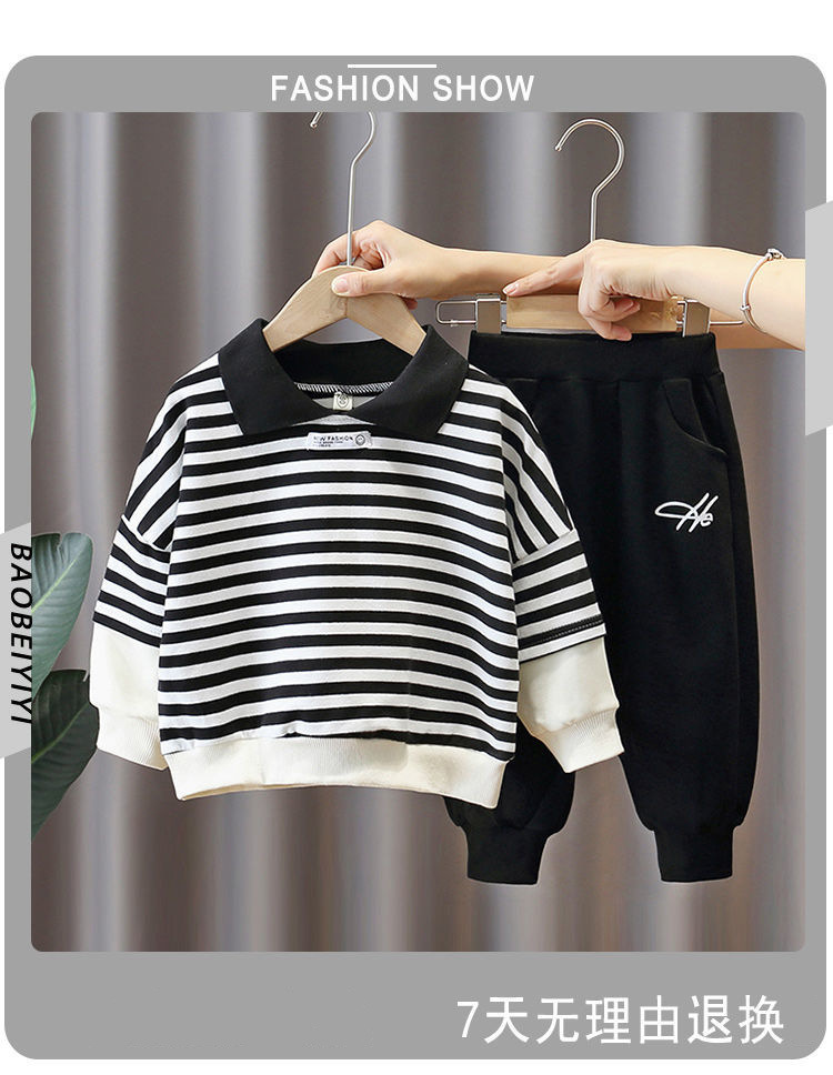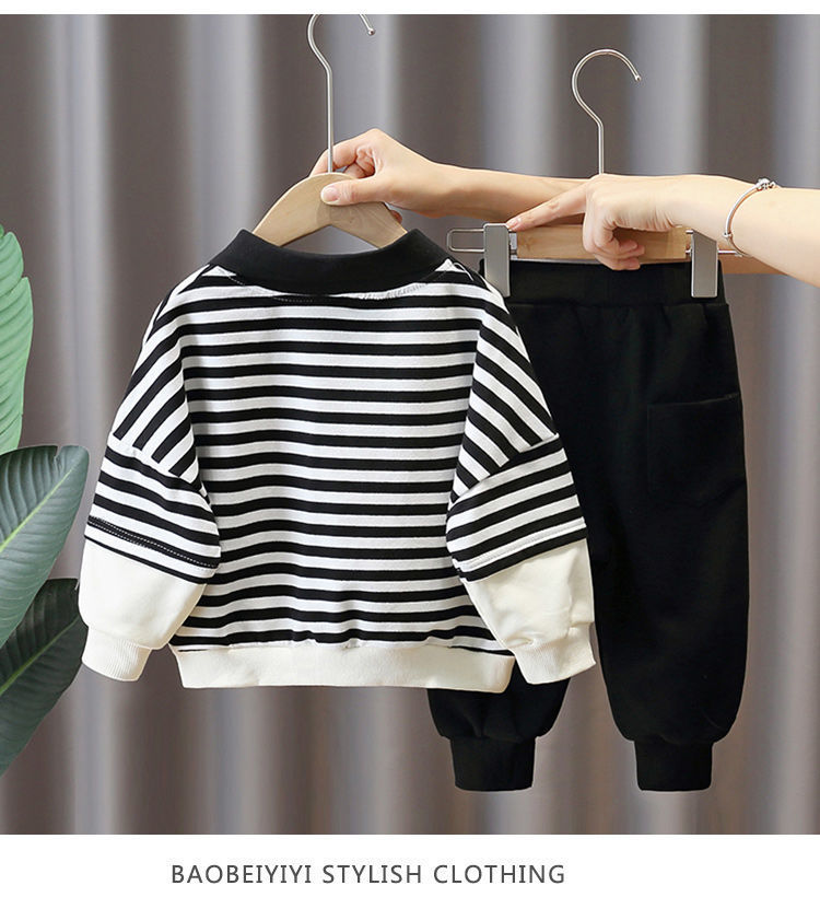 남아 및 여아용 아동복, 아동용 가을옷, 스트라이프 페이크 투피스 스웨트셔츠, 캐주얼 팬츠, 아동 운동복 투피스 세트스토어 가기