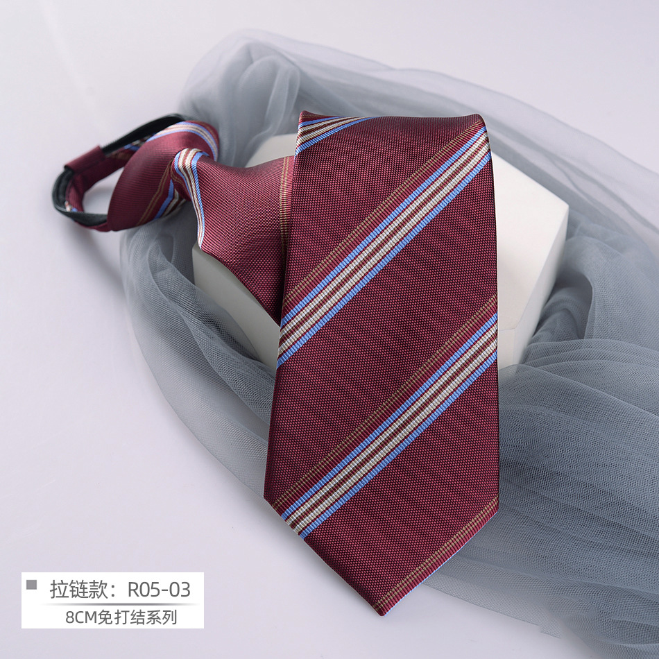 8cm 지퍼 넥타이 도매 남자의 공식적인 비즈니스 전문 스트라이프 웨딩 게으른 매듭이없는 넥타이 넥타이를 당기기 쉽습니다.