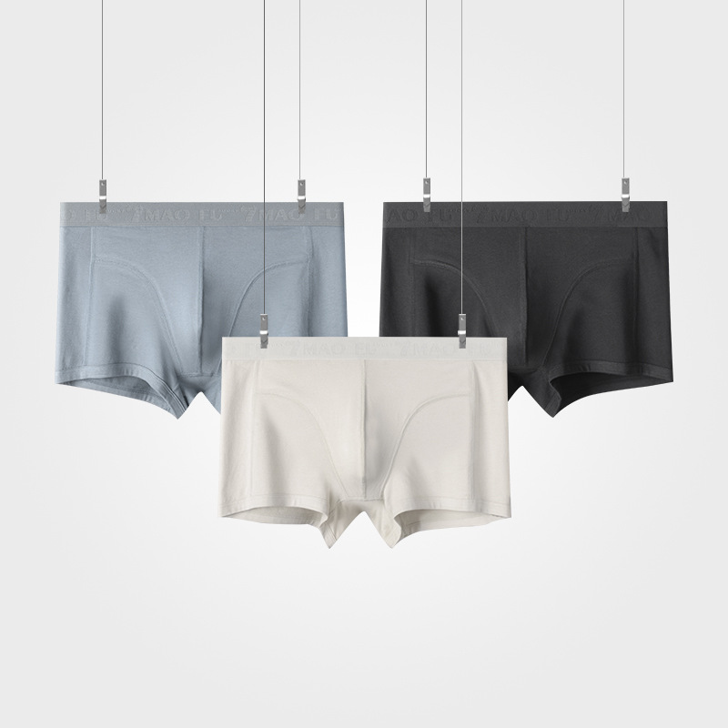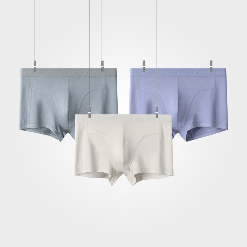 [3 팩] 남성 속옷 오가닉면 항균 단색 면 가랑이 통기성 복서 미드 웨이스트 남성 복서