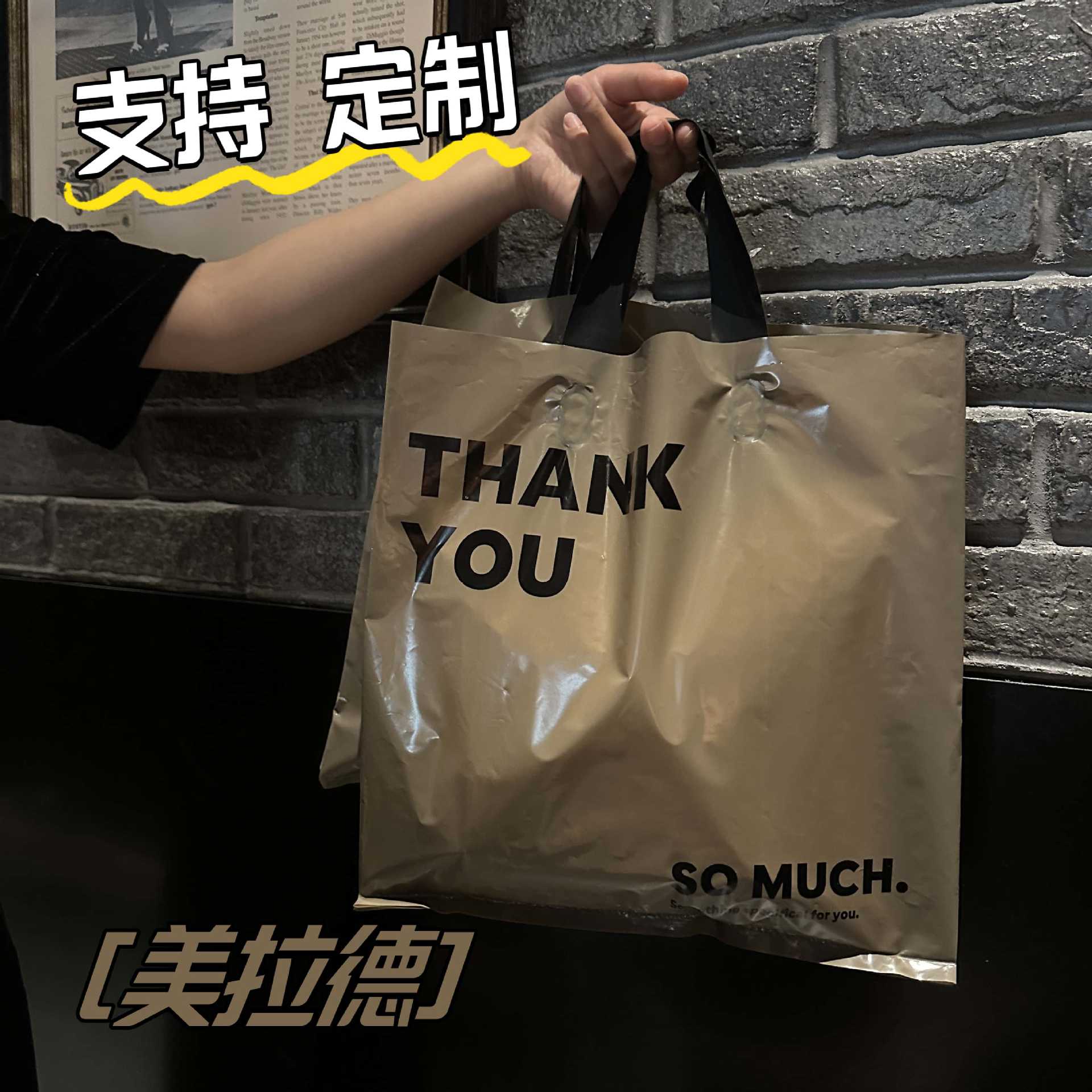 의류 매장용 맞춤형 로고 만화 패션 여성복 아동복 화장품 선물 의류 플라스틱 토트백스토어 가기