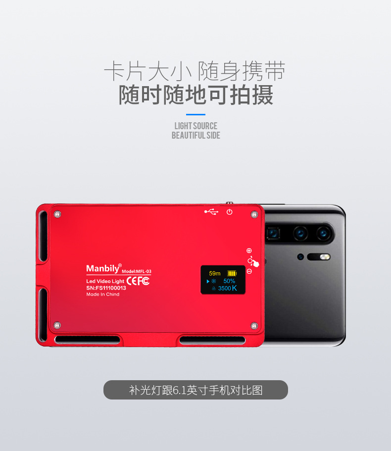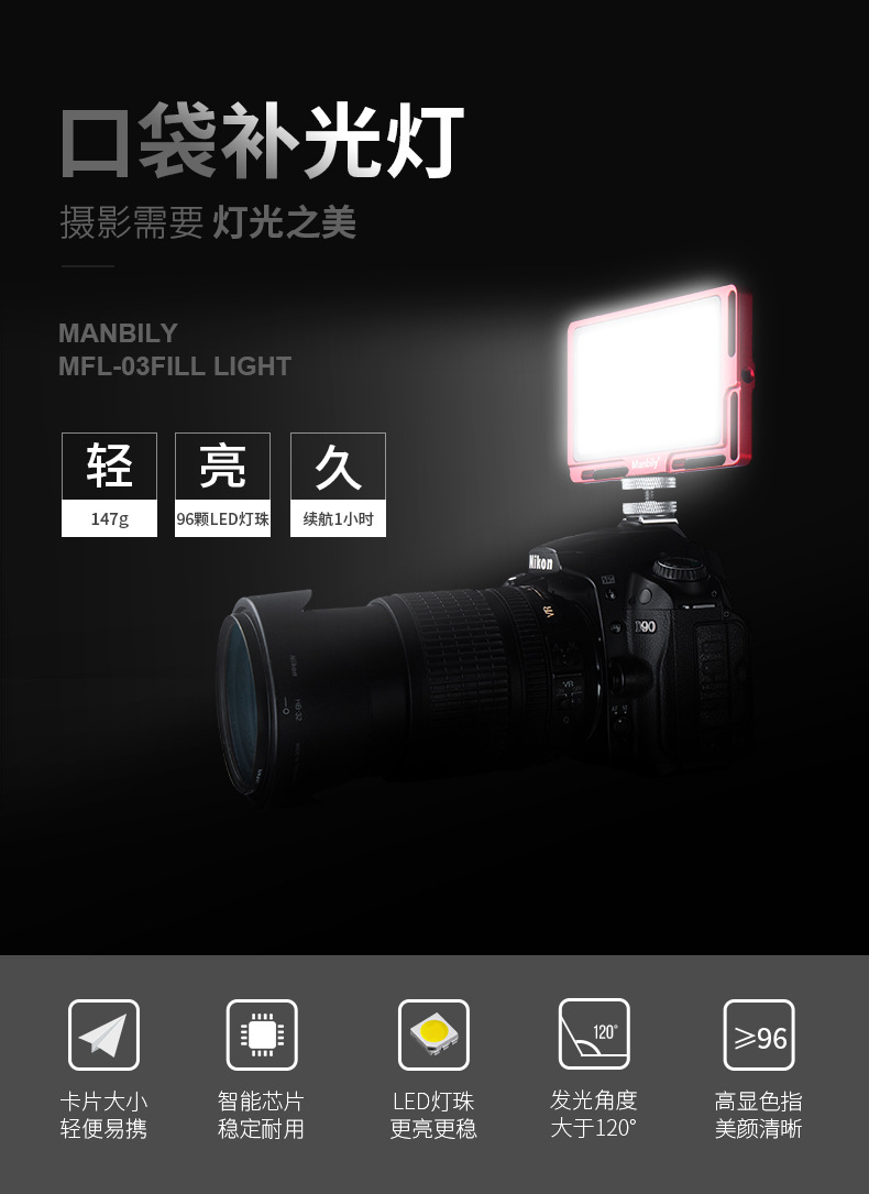 Manbili MFL-03 필 라이트 LED 소형 미니 휴대 전화 라이브 뷰티 야외 SLR 카메라 사진 조명