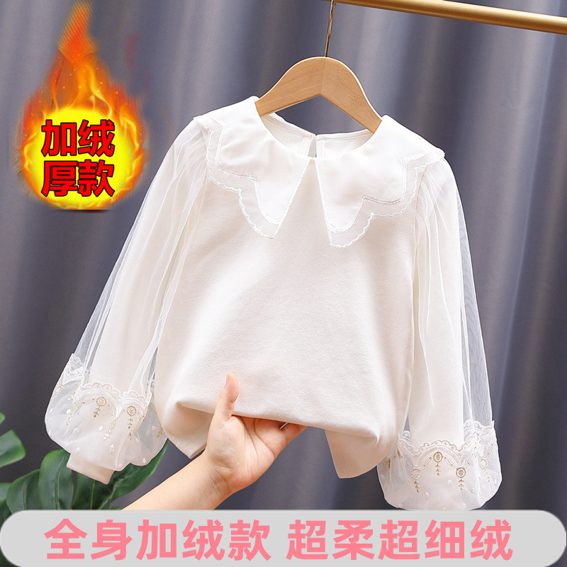 여아 긴팔 티셔츠 봄과 가을 어린이 순면 버블 슬리브 이너베이스 셔츠 어린 소녀의 기모 인형 칼라 탑 6
