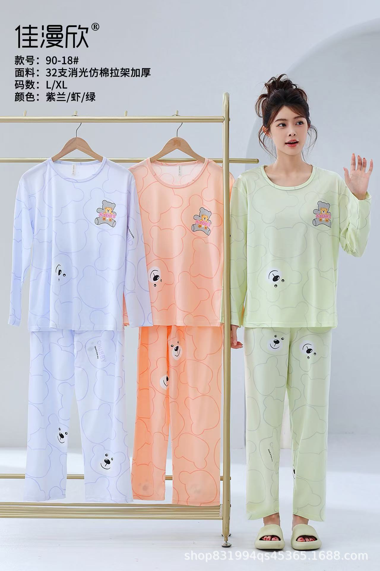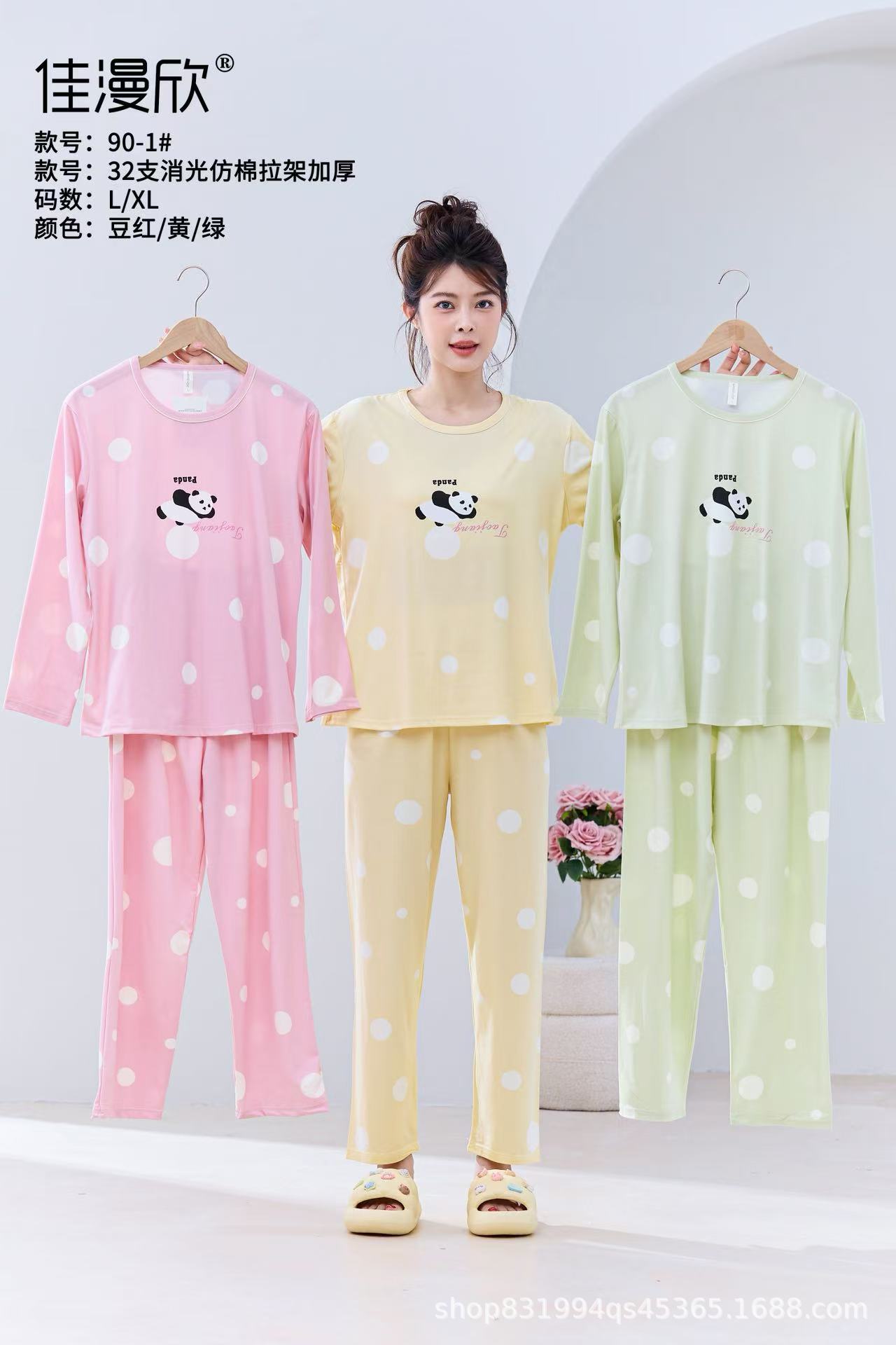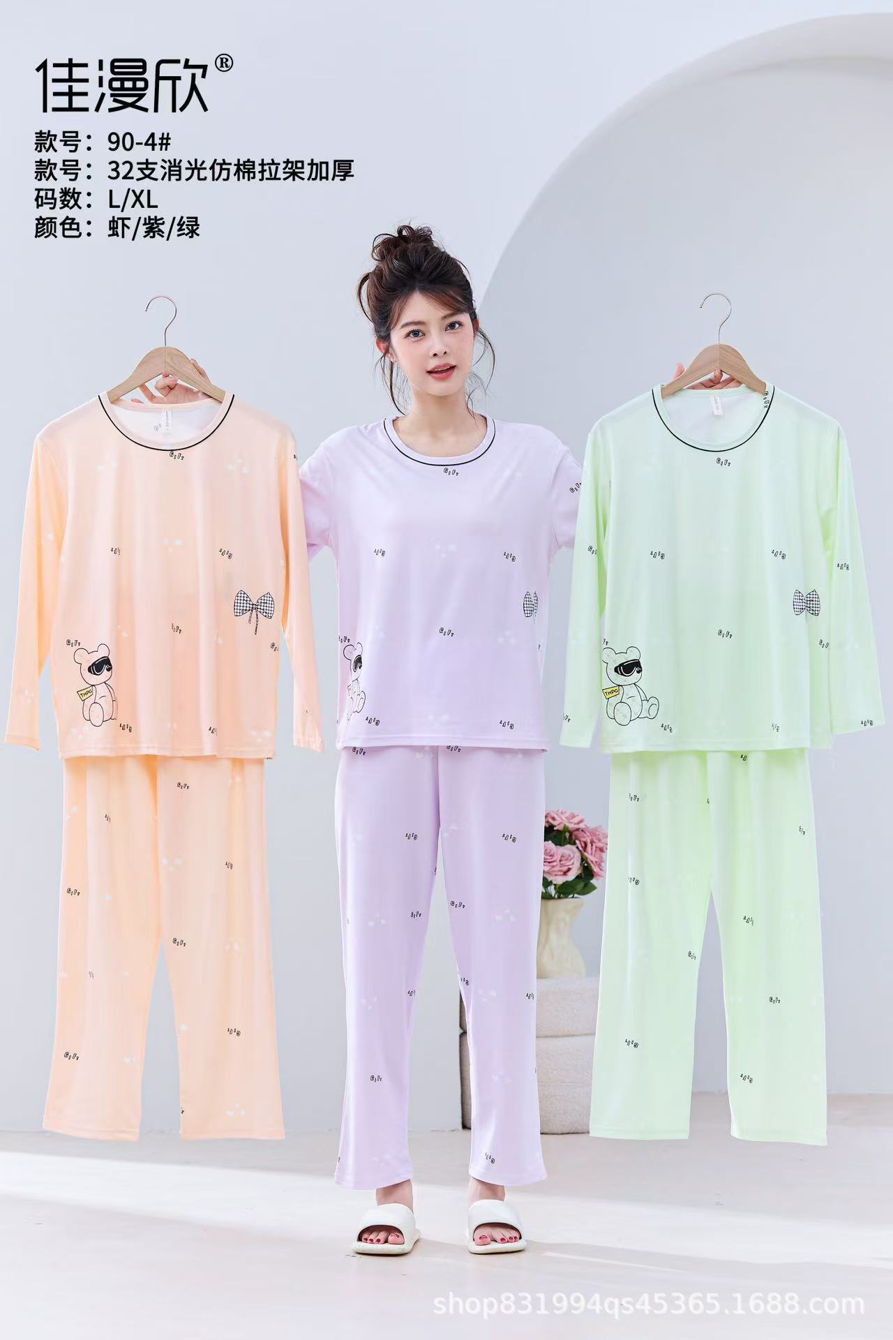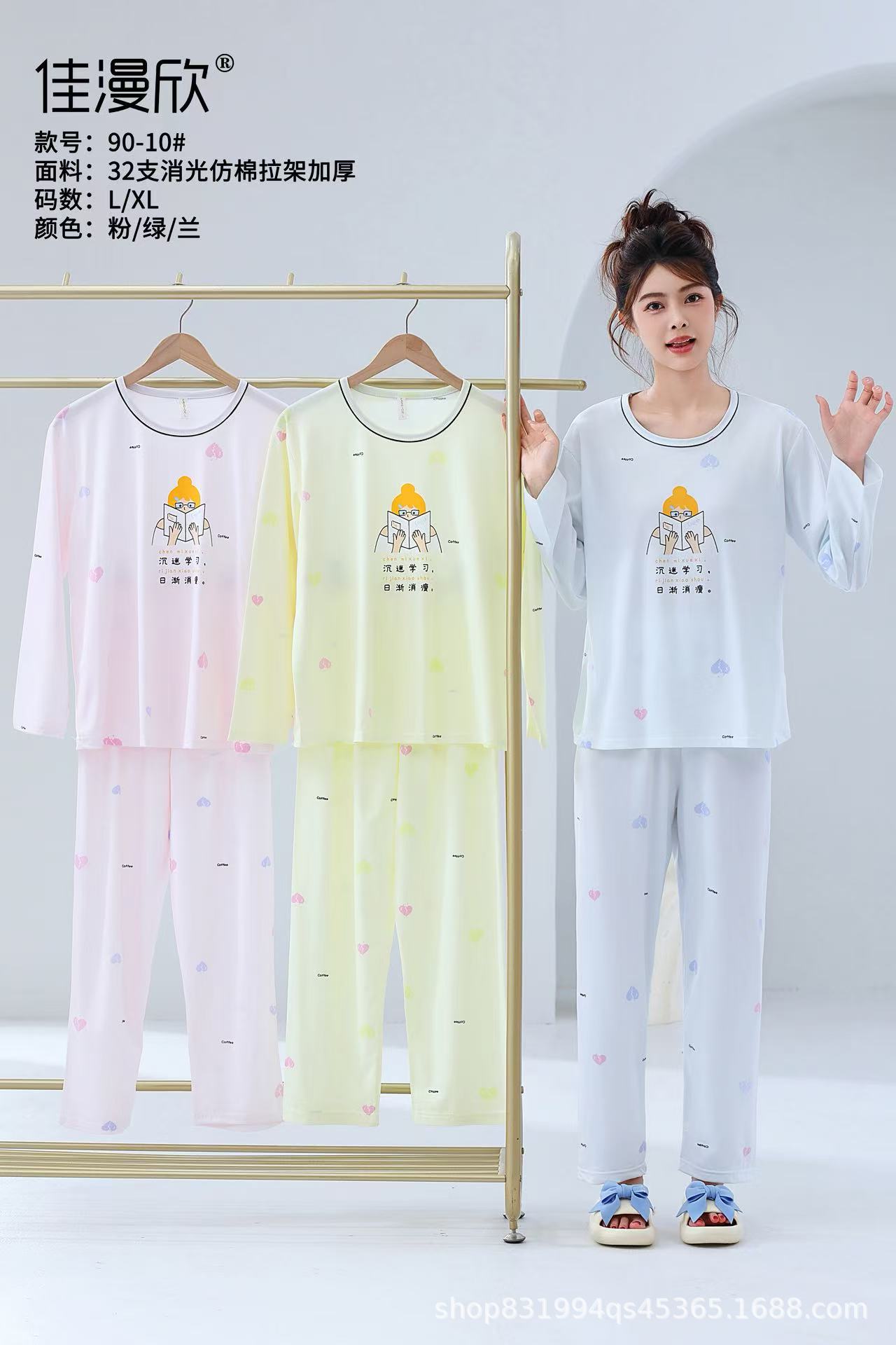 Jia Manxin 대외 무역 가을 여자의 긴팔 풀오버 잠옷 인쇄 우유 실크 라운드 넥 캐주얼 만화 세트 홈